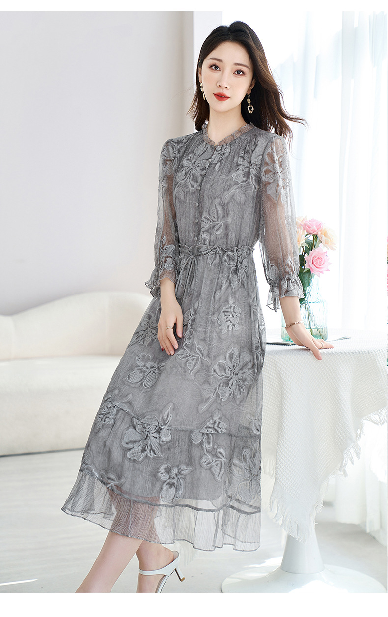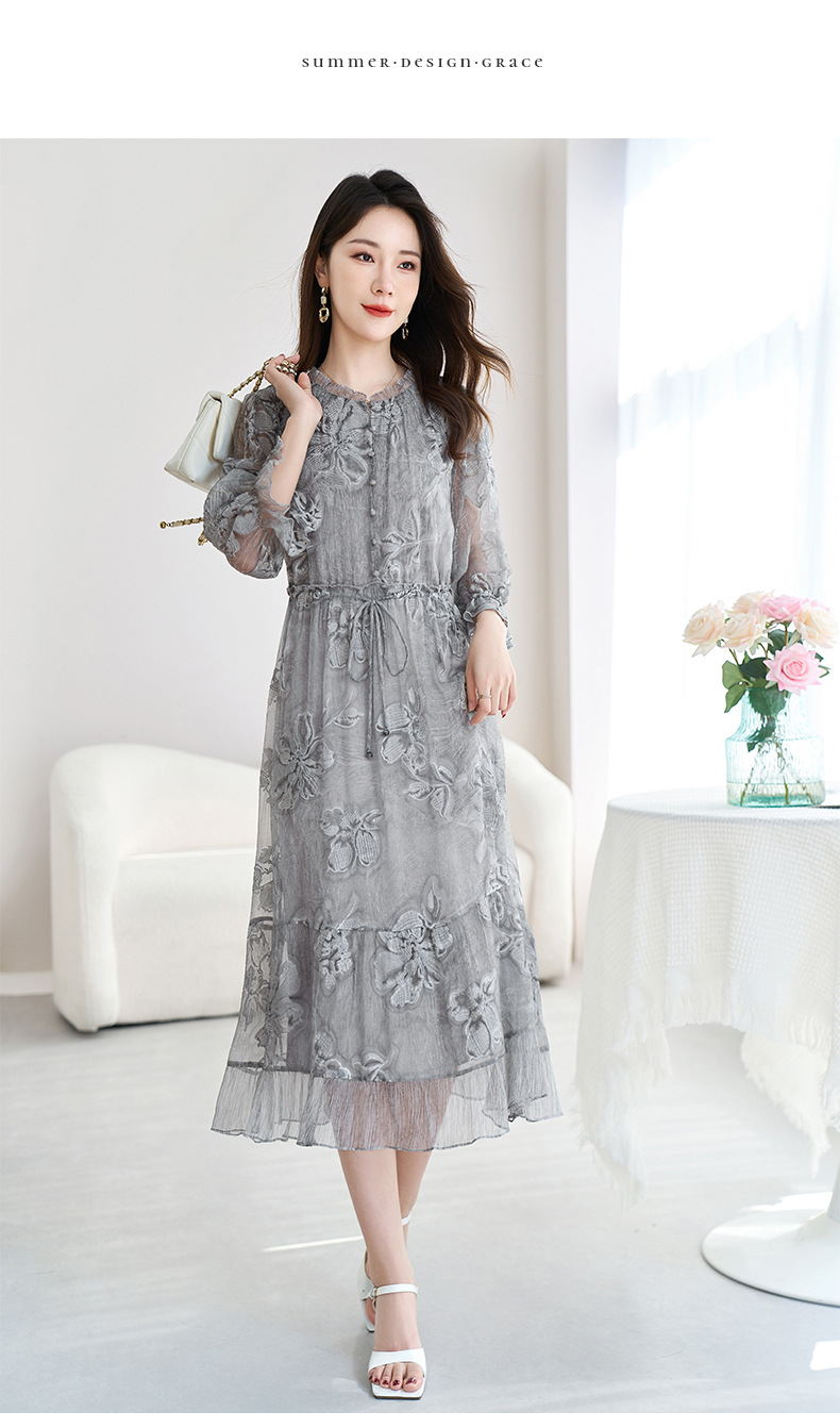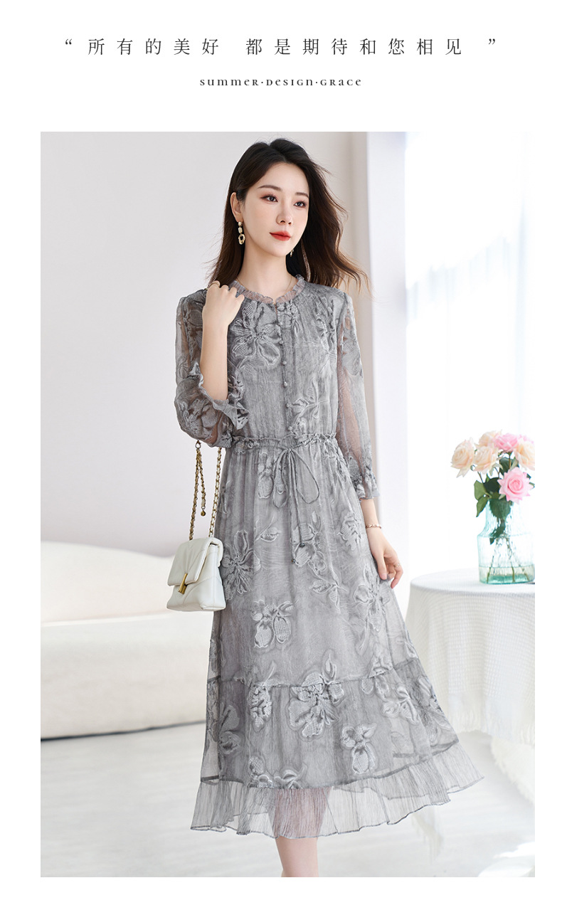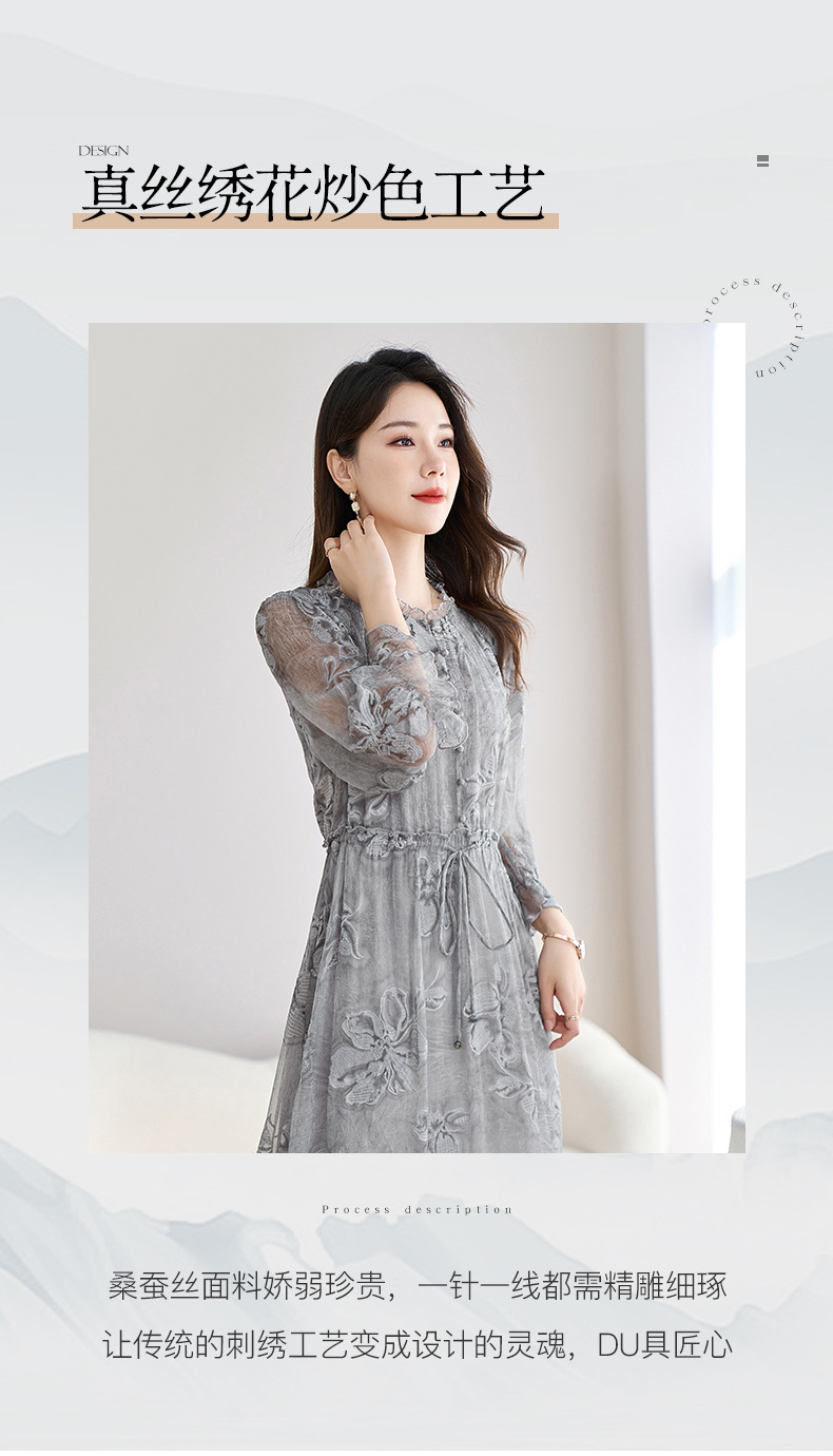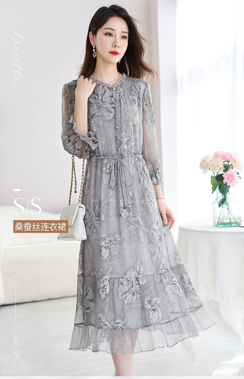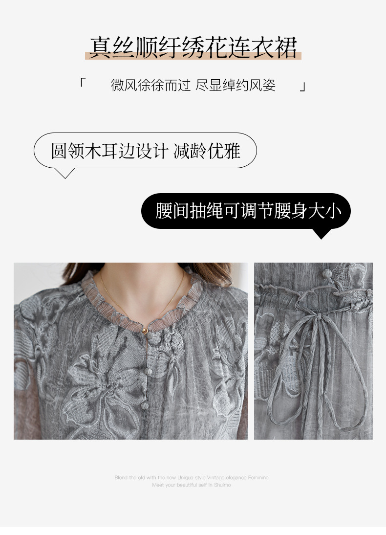 QS-82599372【100%桑蚕丝】达人直播重工绣花中长裙炒色桑蚕丝连衣裙女9372