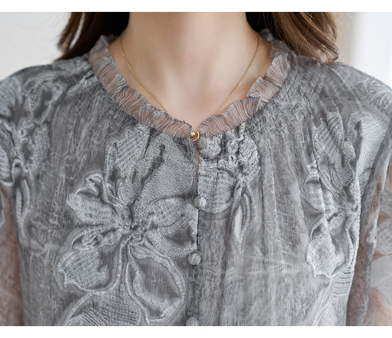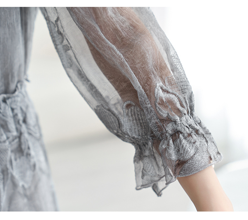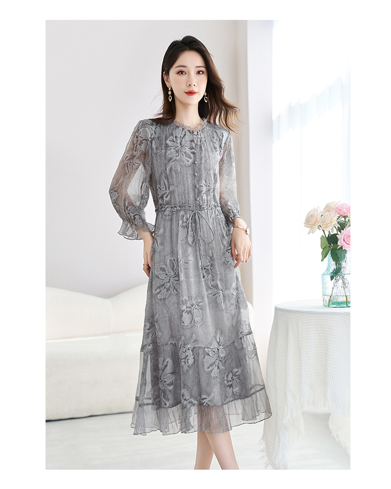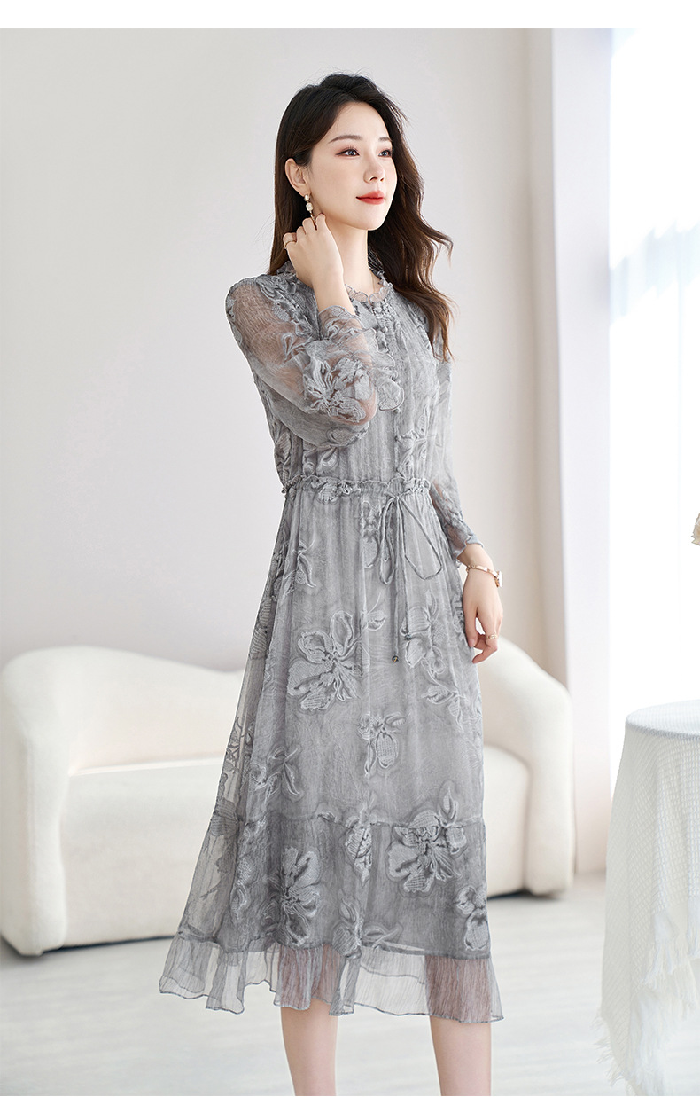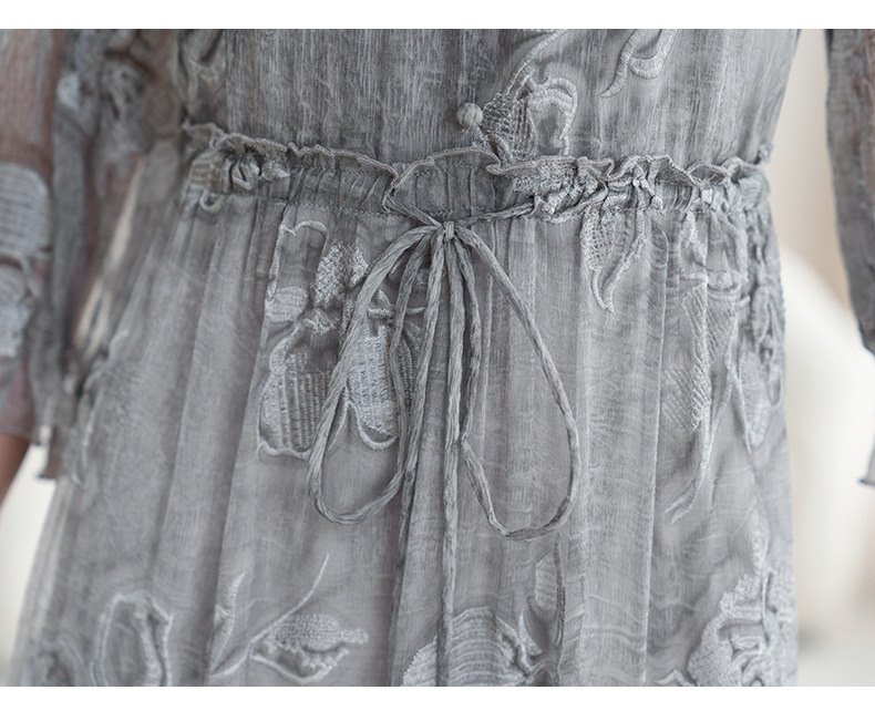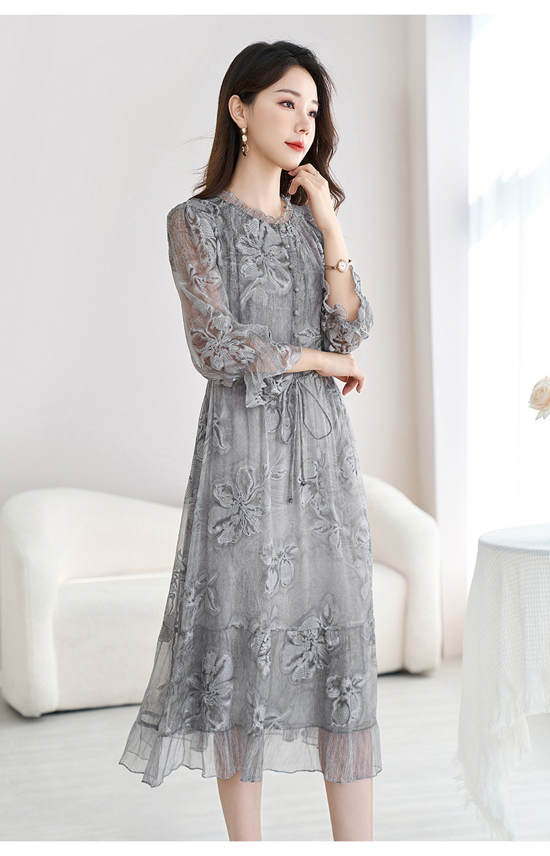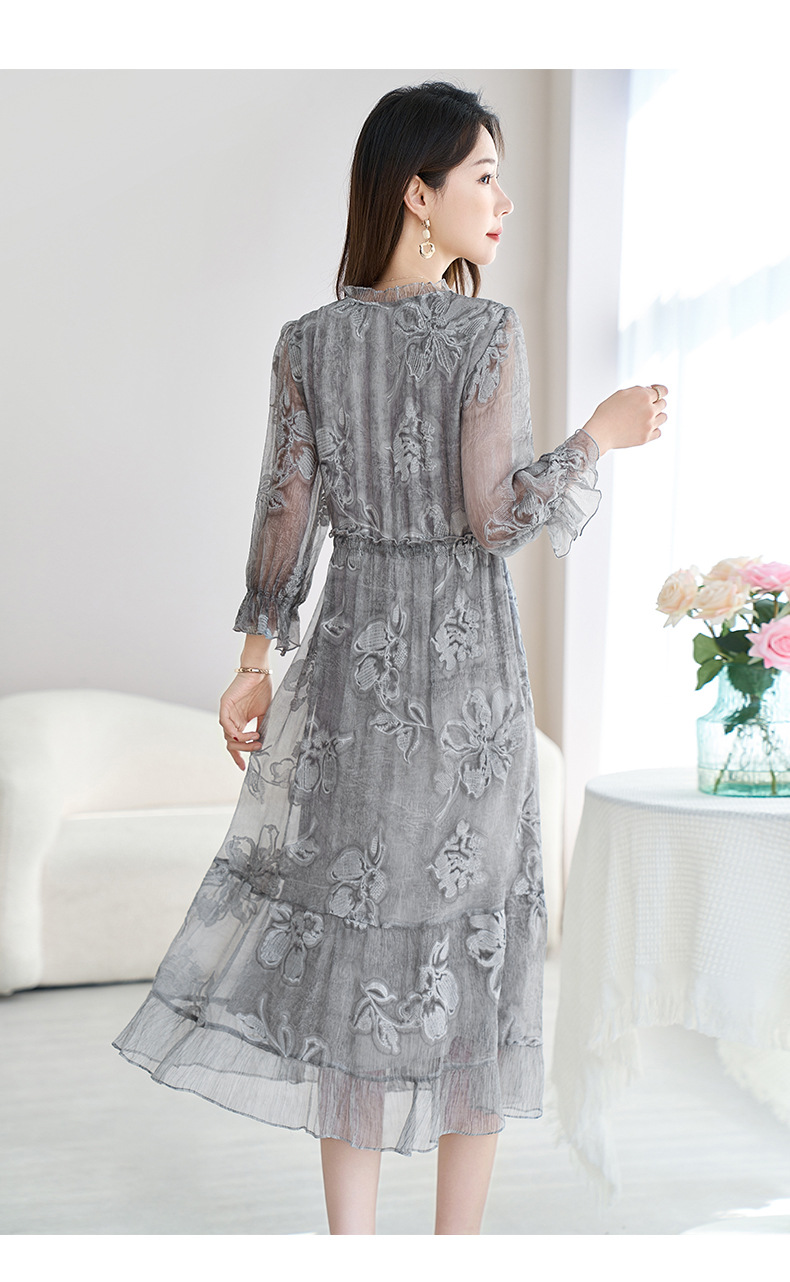 QS-82599372【100%桑蚕丝】达人直播重工绣花中长裙炒色桑蚕丝连衣裙女9372