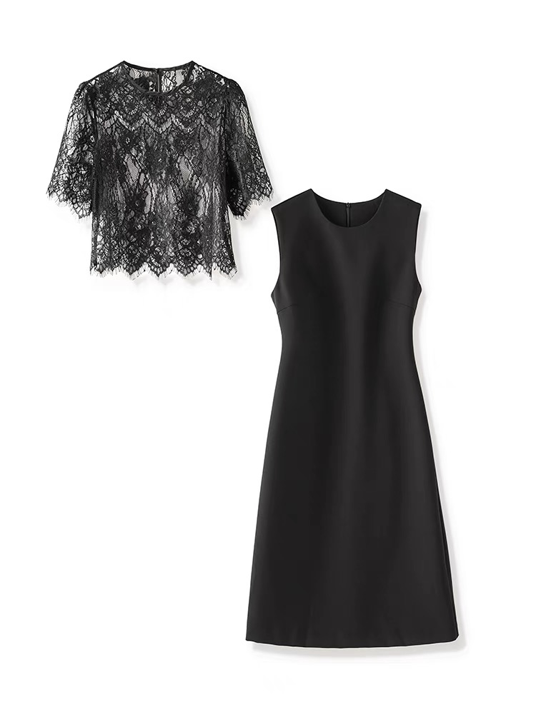 M1 臣禾 【立裁小黑裙】蕾丝罩衫 无袖背心裙连衣裙 JZ251020175