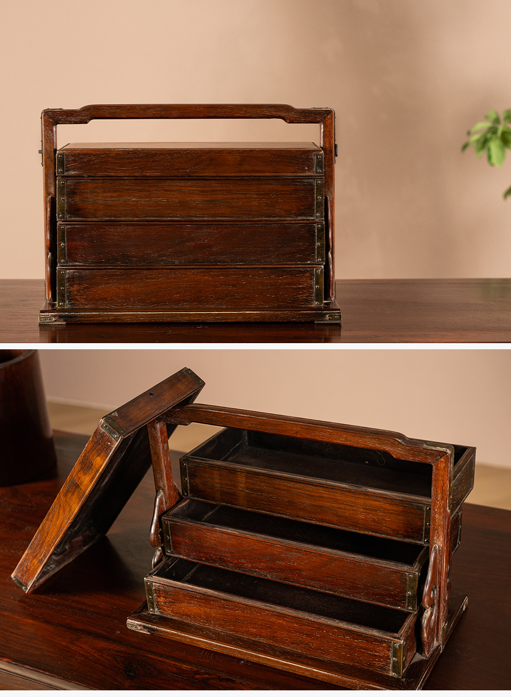 清 黄花梨三撞提梁盒