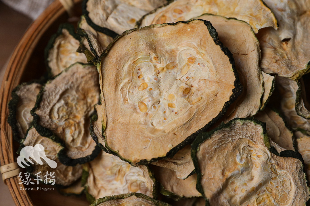 节瓜干选用按照有机方式种植的节瓜,简单清洗过后,切成合适的大小,再烘干,加工过程中无任何添加。