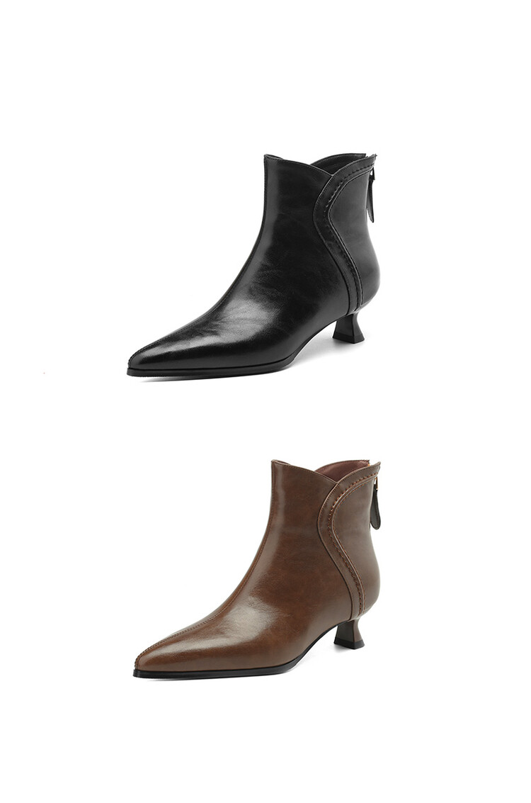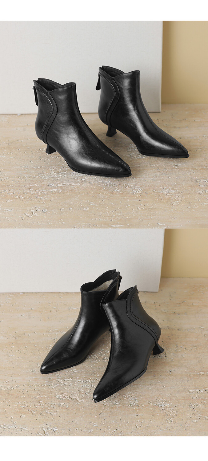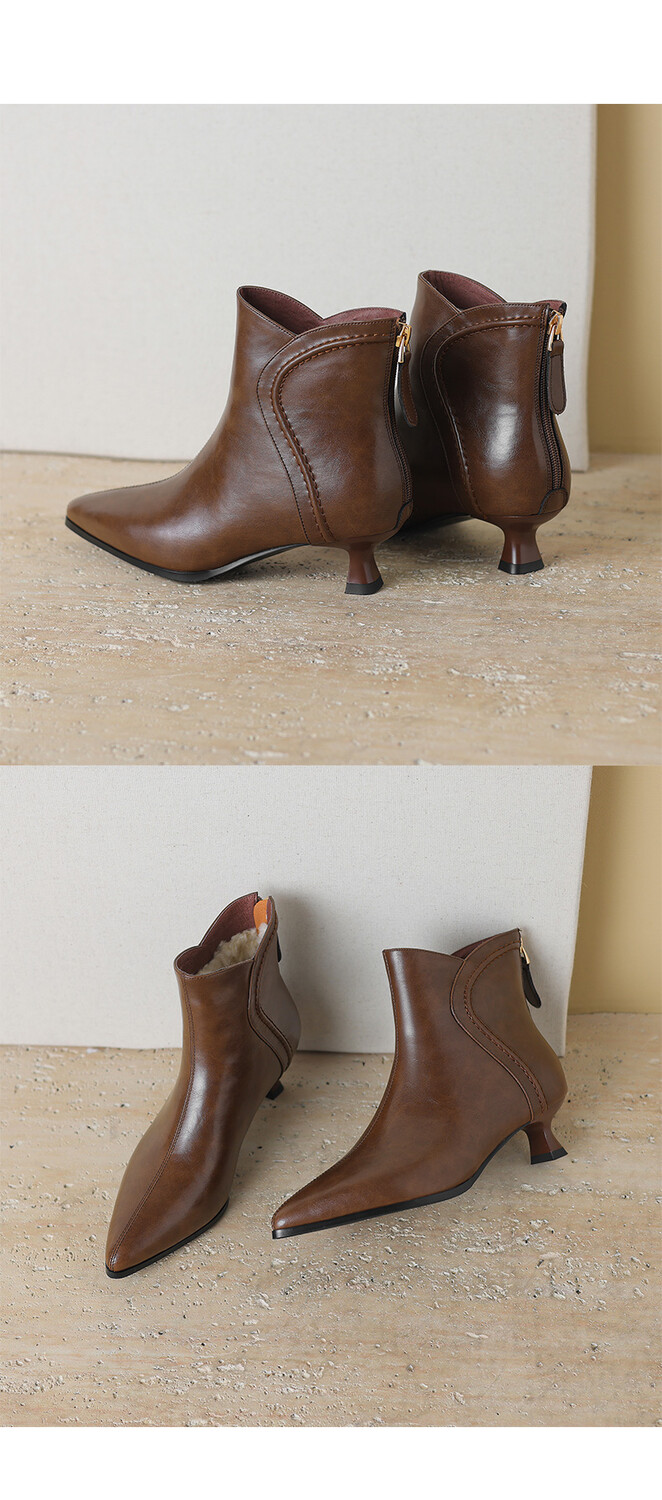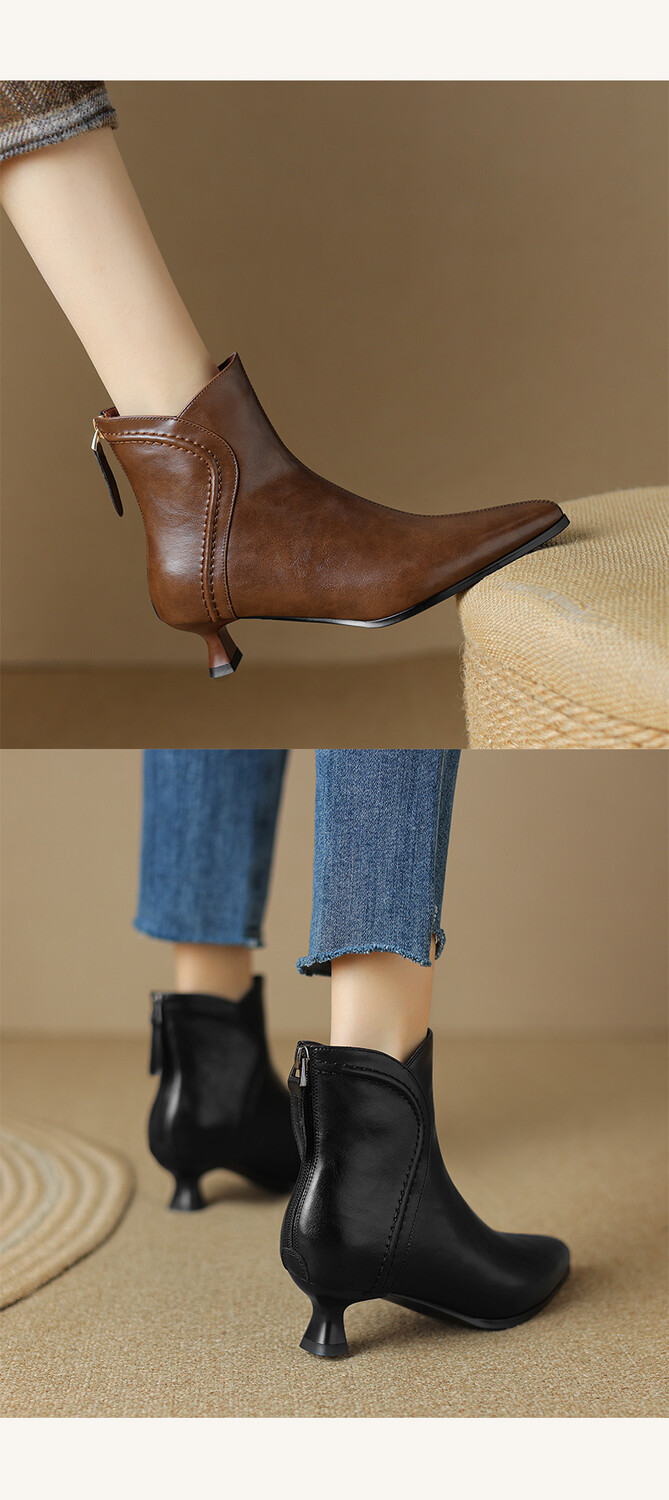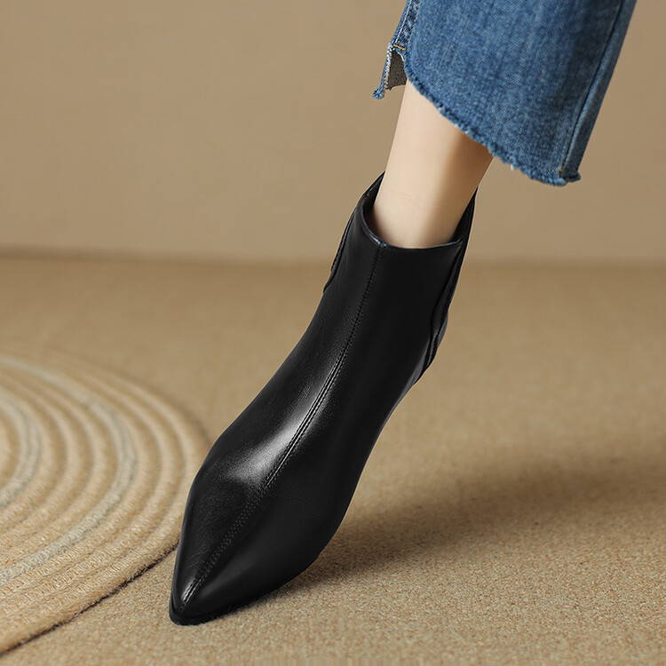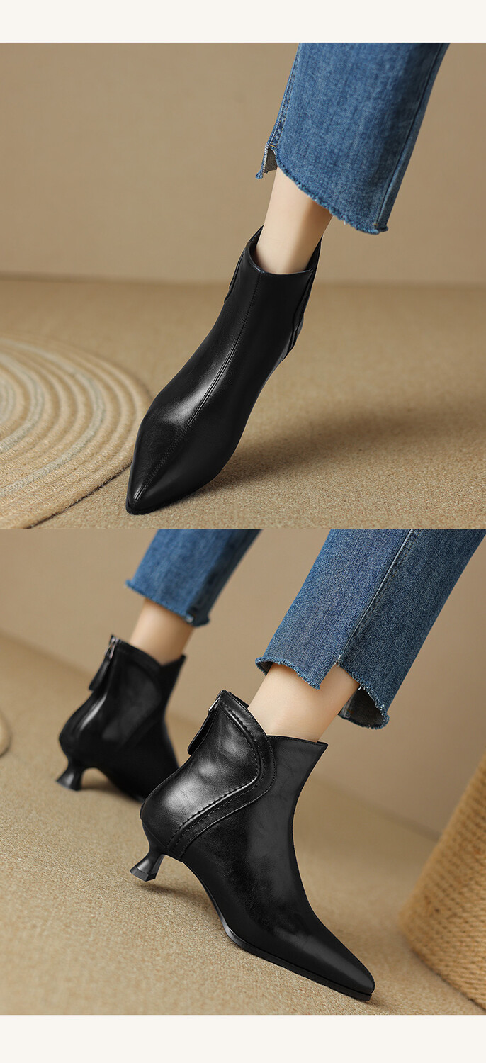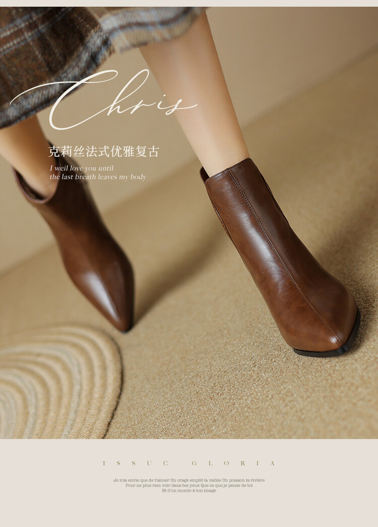 【预售5天】法式尖头高跟短靴女秋冬细跟靴子复古真皮切尔西靴DB&M5753
