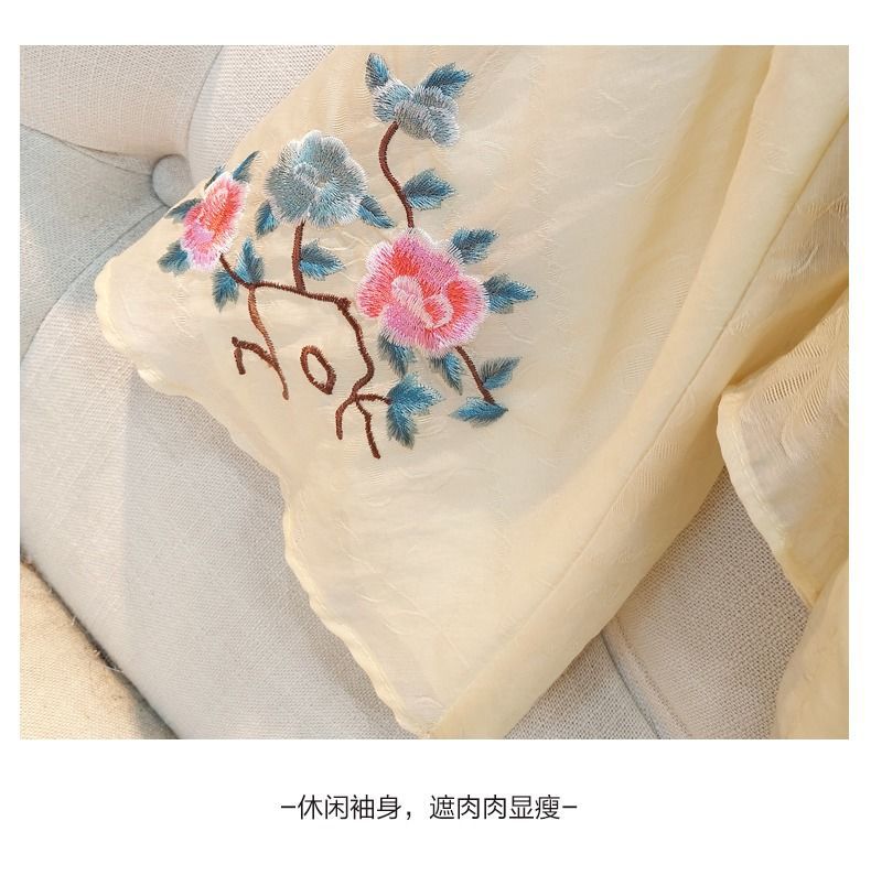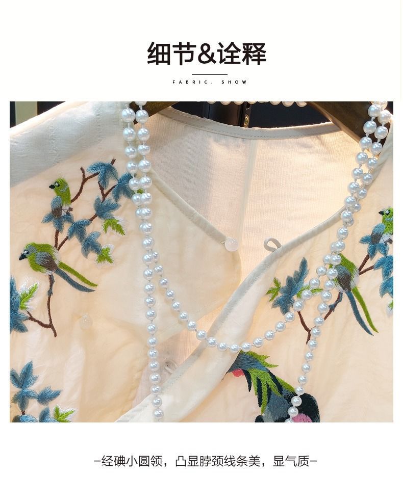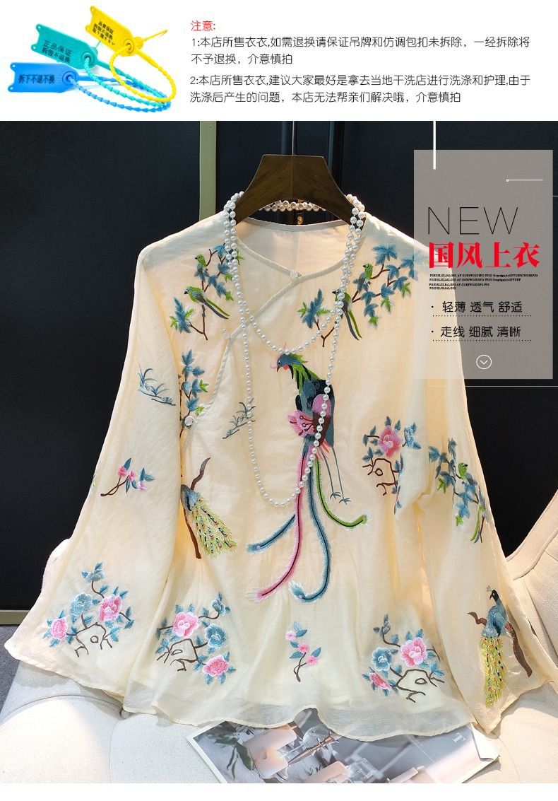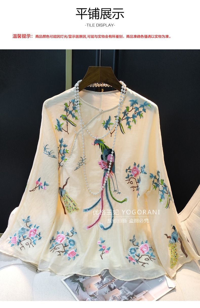 丁摩 复古新中式圆领绣花衬衫女春夏季新款国风休闲上衣潮长袖6ZF-6318