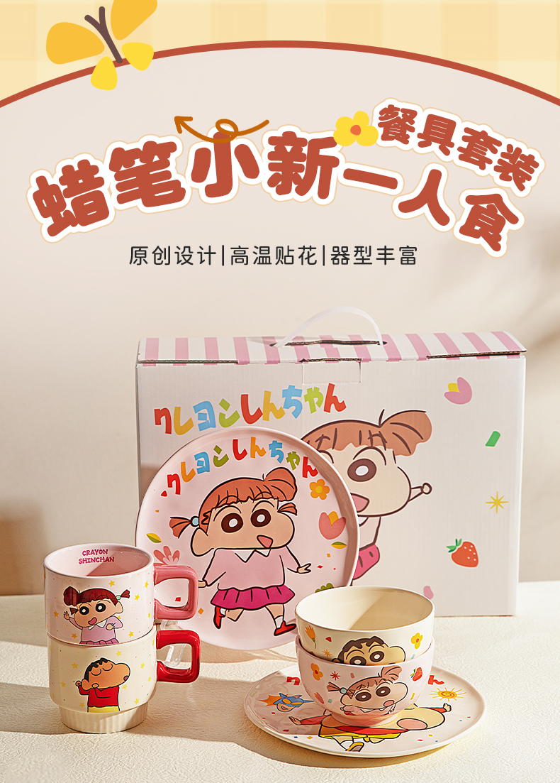 摩登主妇&蜡笔小新 餐具套装碗盘家用一人食餐盘儿童生日礼物