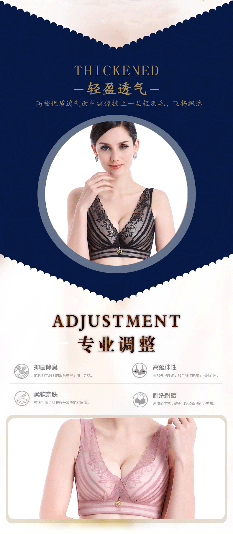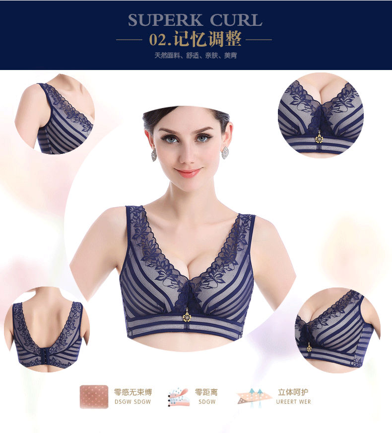 DQM-2068新款蕾丝背心款收副乳舒适无钢圈文胸内衣TZW
