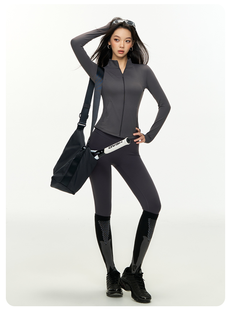 【限时秒】YOGACODE【火树银花系列】秋冬加厚保暖长袖瑜伽服立领拉链修身显瘦健身上衣DWG125681