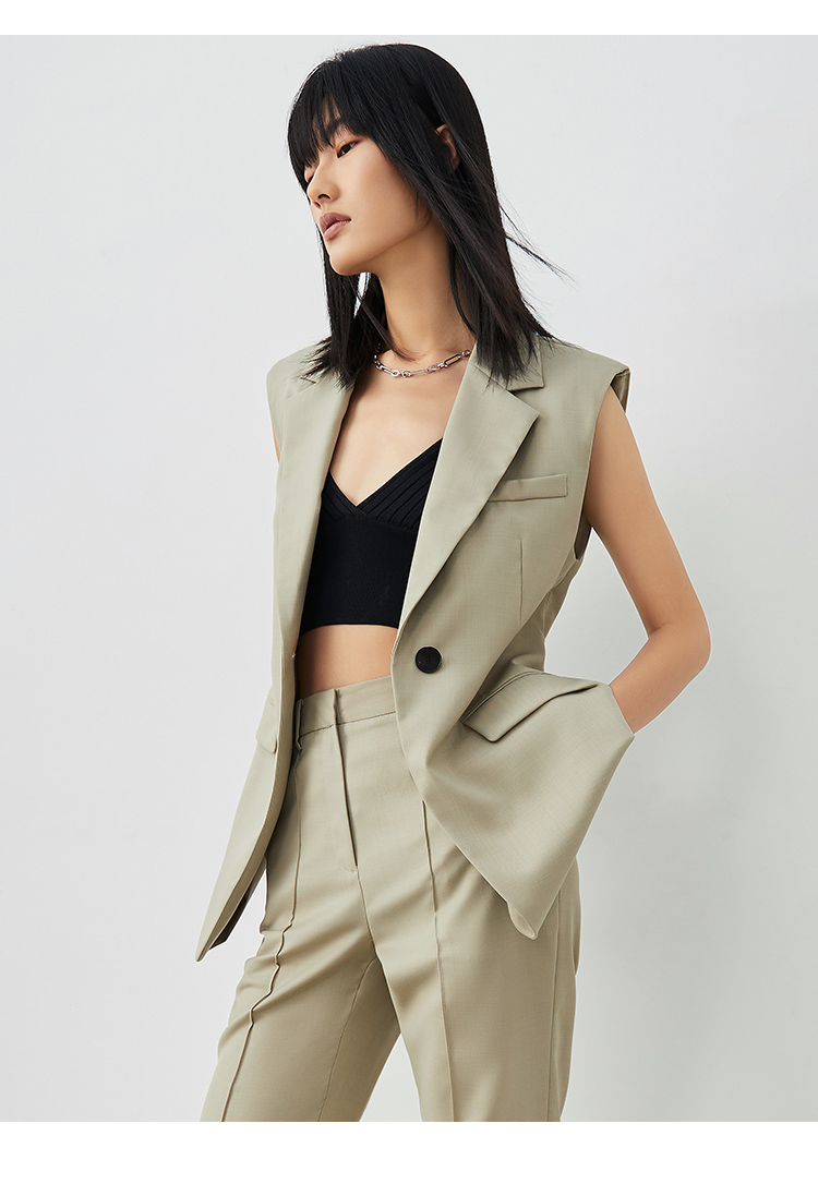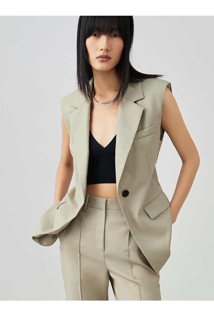 VIMAGE/纬漫纪春季新款时尚百搭马甲女简约干练修身西装马夹女薄外套V1703306