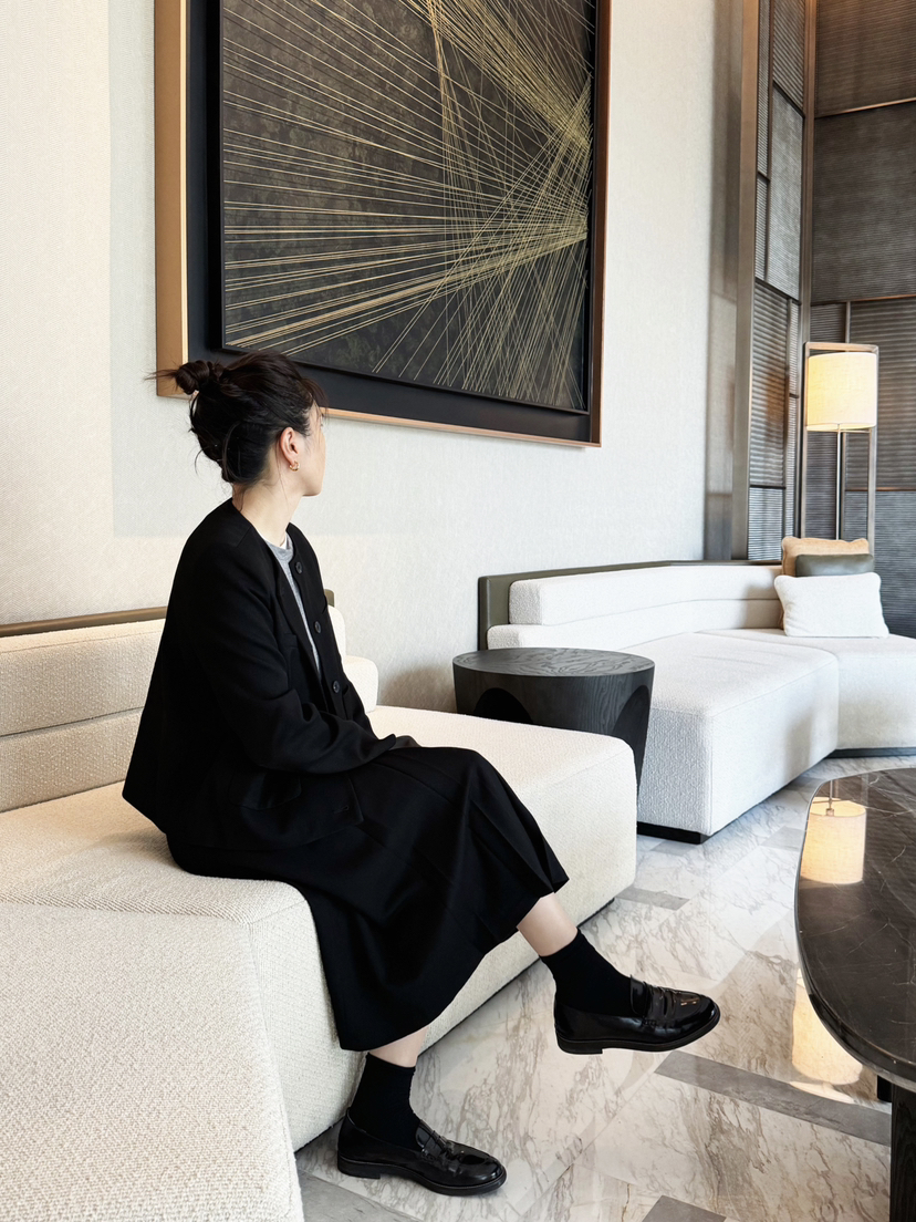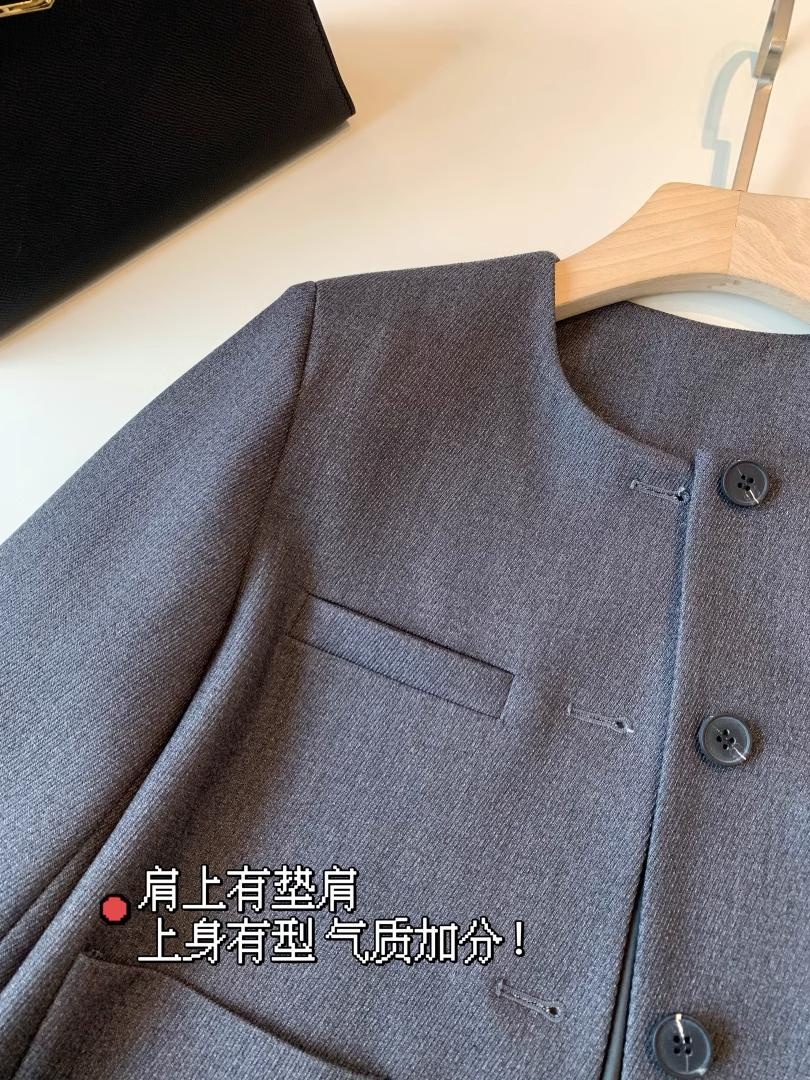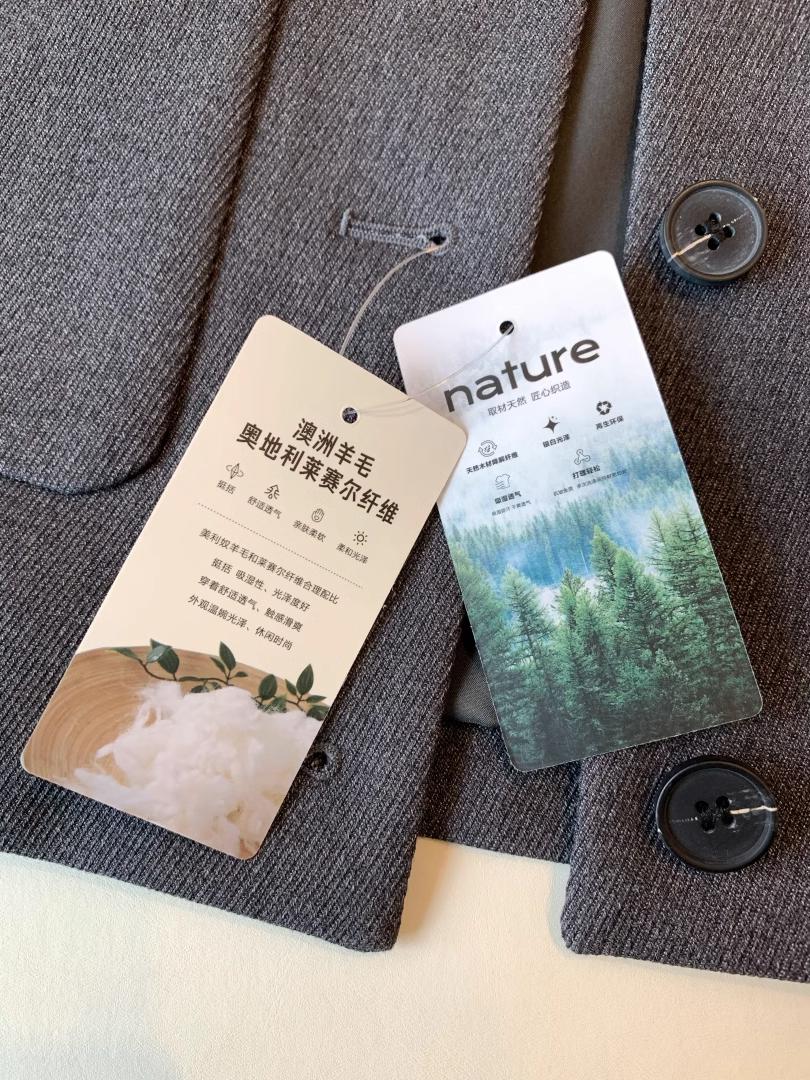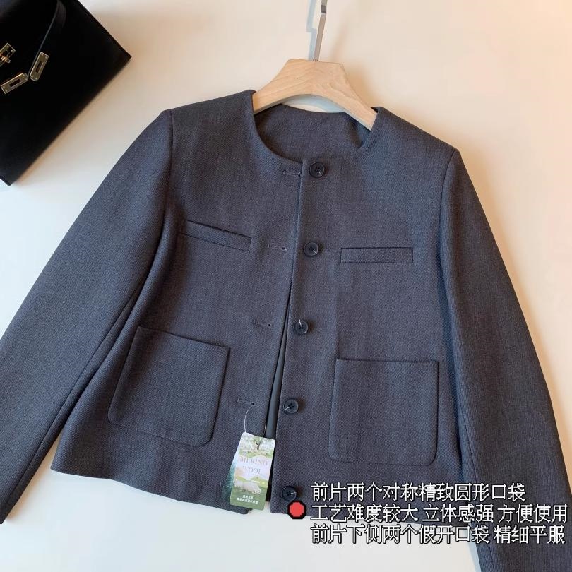 面料风格独特新颖篙级,莫代尔绵羊毛,加入弹性纤维,回弹性优越,穿着舒适,外观精致,挺括有型,取材天然,匠心织造,再生环保,打理轻松,轻松展现女性独特魅力!大匠心工艺:首先面料采用复合50D弹力粘衬,挺括有型,又有筋骨感。1.圆领设计,领圈烫1公分粘衬,工艺精湛,贴合人体脖颈,带有弧度美感,修饰脖颈线条,造型简洁大方,展现出一种简约而不失优雅的气质魅力。2.前片有2个精致圆形口袋,工艺难度较大,立体感强,方便使用,前片上有2个假开口袋,做工精细平服。3.肩上有垫肩,看上去炒鸡有型,气质加分!袖口设计有袖叉口,别具风格,更增添了一份与众不同与优雅感,订制暗花扣子,增加了一些时尚感。4.左右门巾有五粒订制暗花扣子,反面也有垫底扣。下摆后中有手缝线,在里面的,面里缝住,细工慢活,精致感满分!