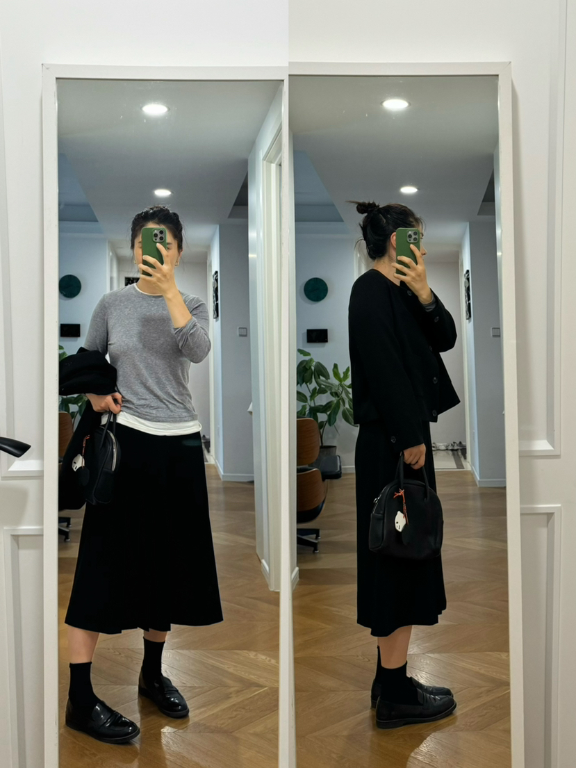 会会165/120斤平时穿29码裤,半裙穿L有松量,塞上衣还有松量
