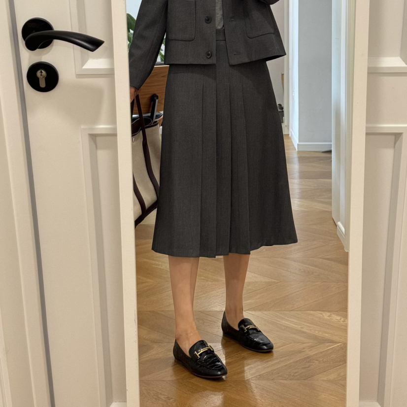 2024早秋新款打裥压褶A字版型,挚爱佰搭神器,优雅伞裙出镜率好高!JI简风格易搭配,前片百褶造型,小有设计感,层次分明立体感较强,工艺精湛独特,细节到位!细工慢活,压褶的菲常好看,细节之处能够为你的穿搭增添趣味,既能优雅上班,也能甜美约会,打破职场与生活的穿衣界限!搭配小香风外套也是莞美穿搭!面料采用日本JIN口莫代尔和绵羊毛,大斜纹,立体感较强,柔软舒适,廓形感却很强,可穿三季,不易起球,起皱,易打理!取材天然,匠心织造,再生环保,大厂工艺,1.前片压褶,立体感强,也是炒鸡难做的地方,垂顺,细工慢活!2.腰头处有一公分烫衬,圆腰设计,平服。3.后中ykk拉链,穿脱方便,下摆JIN口机翘边,细节莞美!所有里面缝份拷边,烫平。