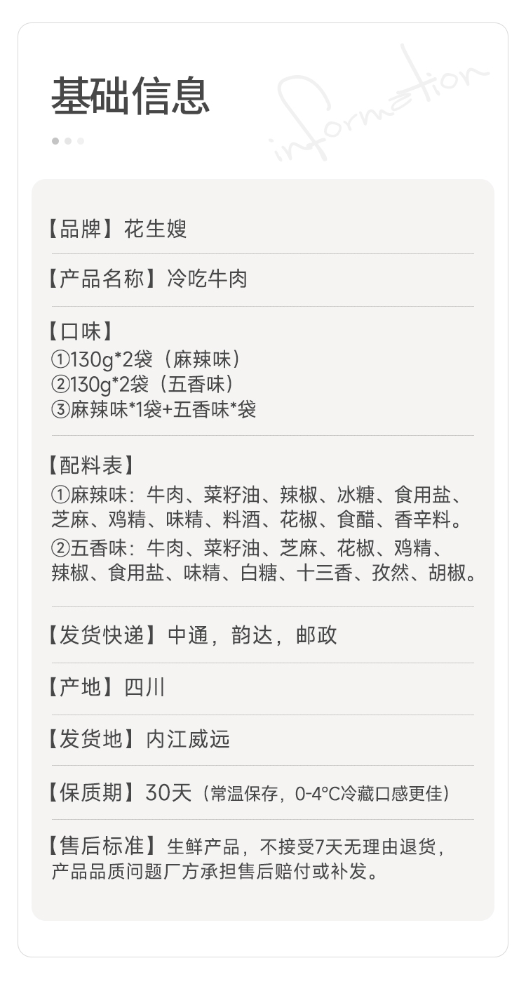 【不售后情况】:以下情况我不方不承担售后赔付或补发1、无理由拒签或拦截快递2、自身原因未及时不取货,导致产品过期变质3、客户订单地址/电话错误,无法联系上客户等顾客自身原因导致快递退回4、未提供凭证或超过签收24小时售后时效5、产品试吃中/反应因人而异,口味差异不属于质量问题6、因快递暴力导致箱子变形内物未破损,不影响食用