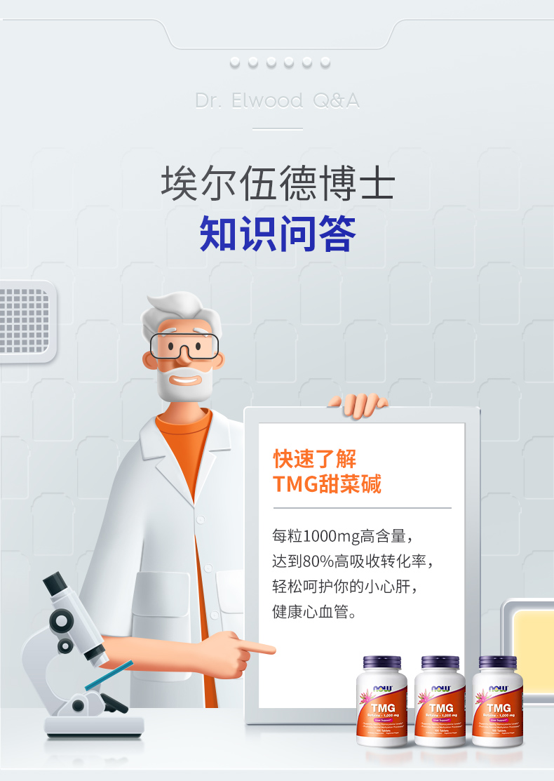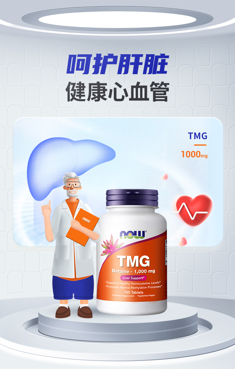 NOW诺奥三甲基甘氨酸片TMG甜菜碱100片/瓶