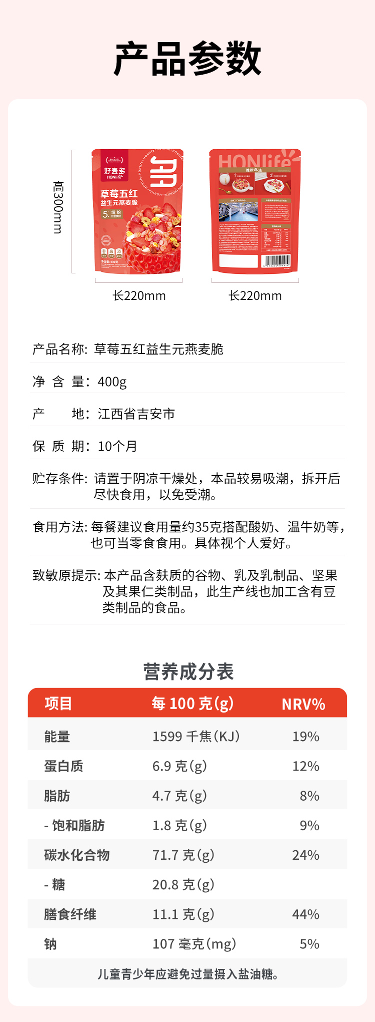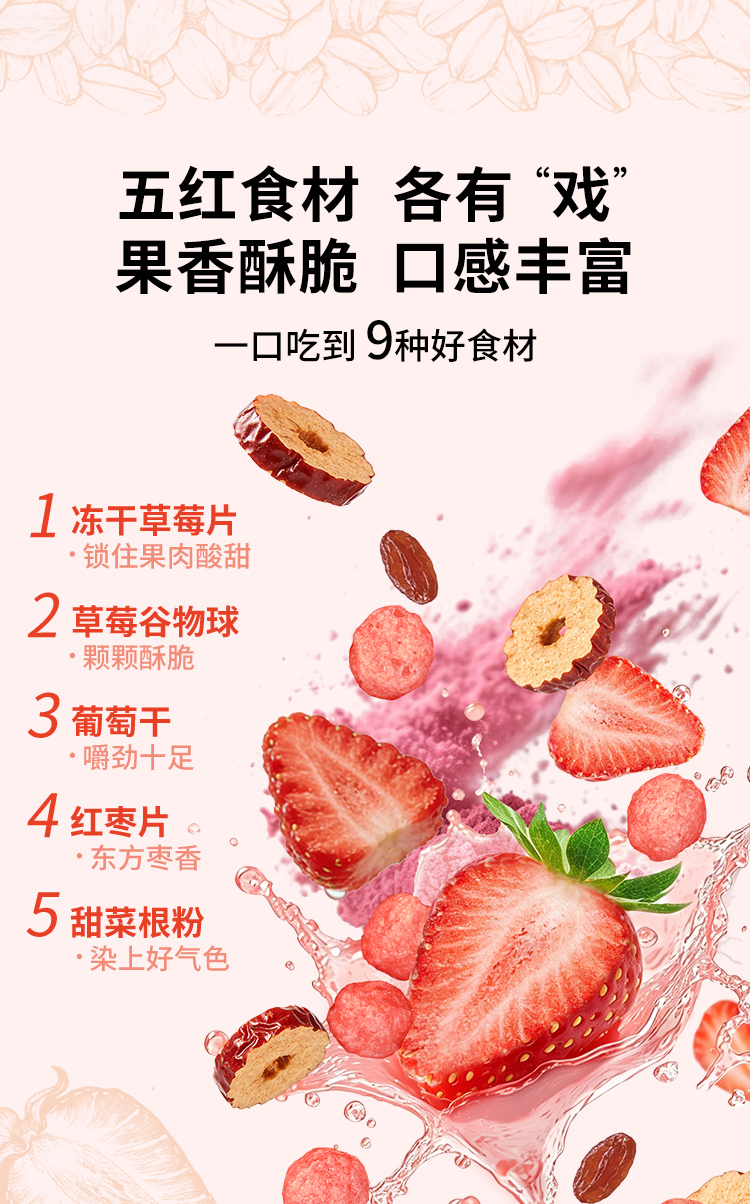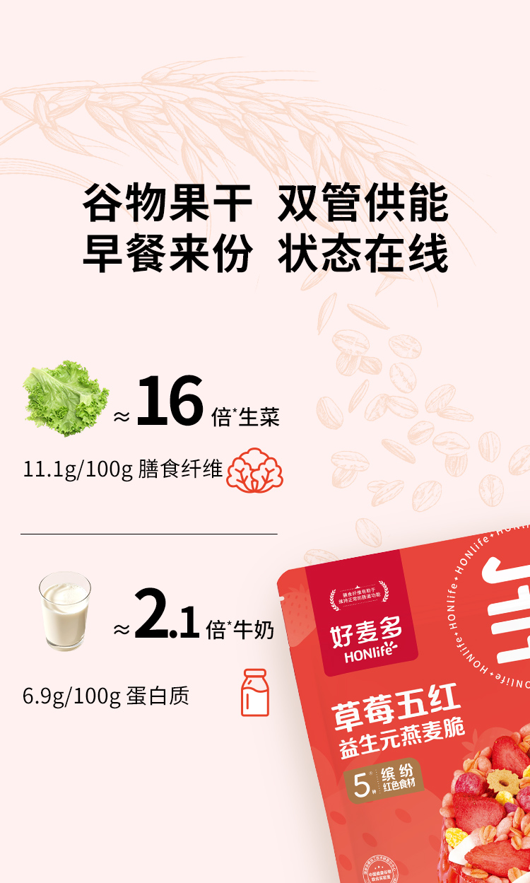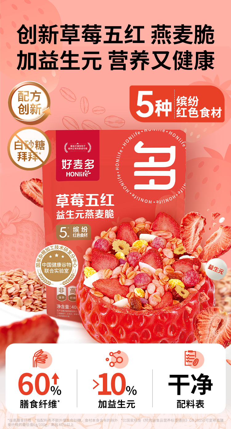 好麦多草莓五红益生元燕麦脆400g