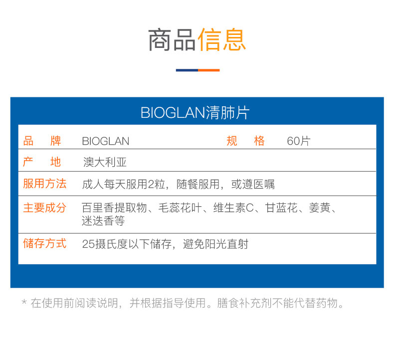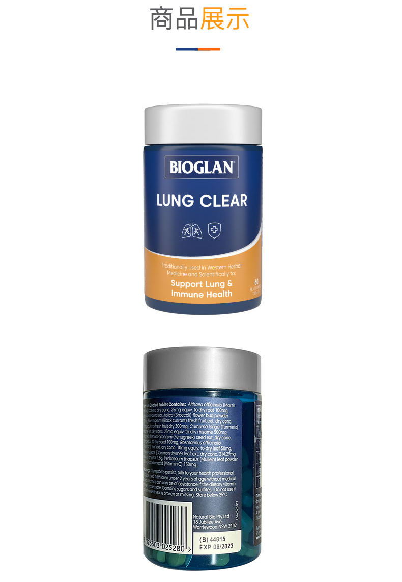 Bioglan宝兰澳洲草本复合清肺片清理肺部60粒(效期28年11月)