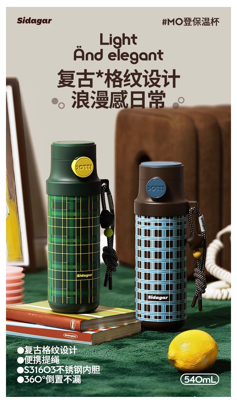 世大家高颜值弹跳咻咻保温杯棕金伴侣(540ml)