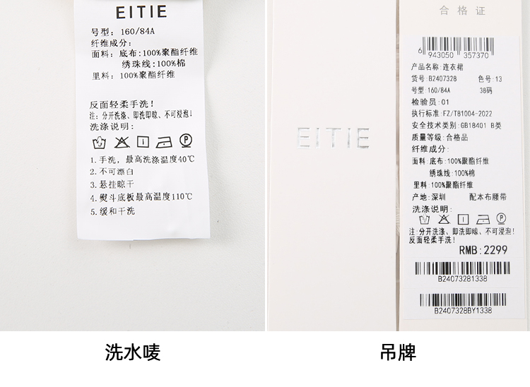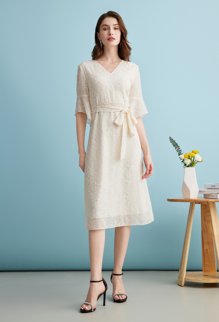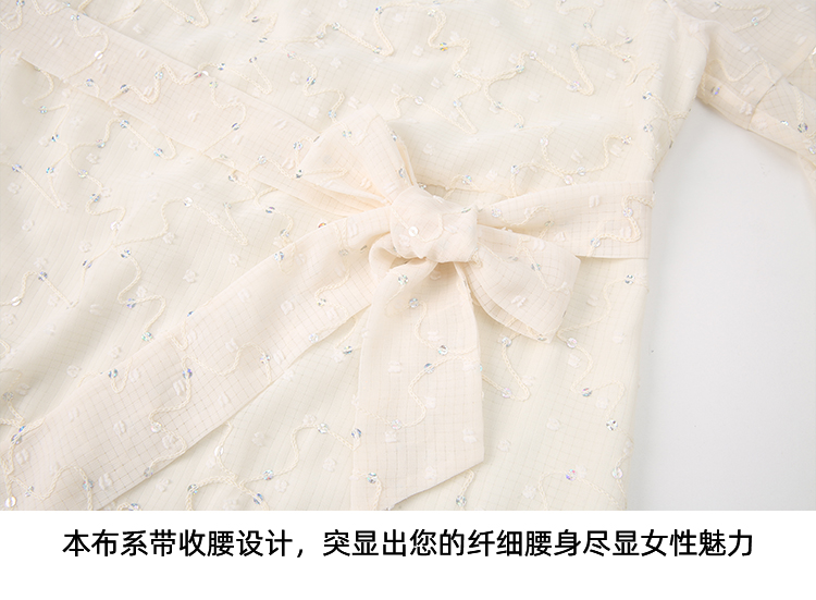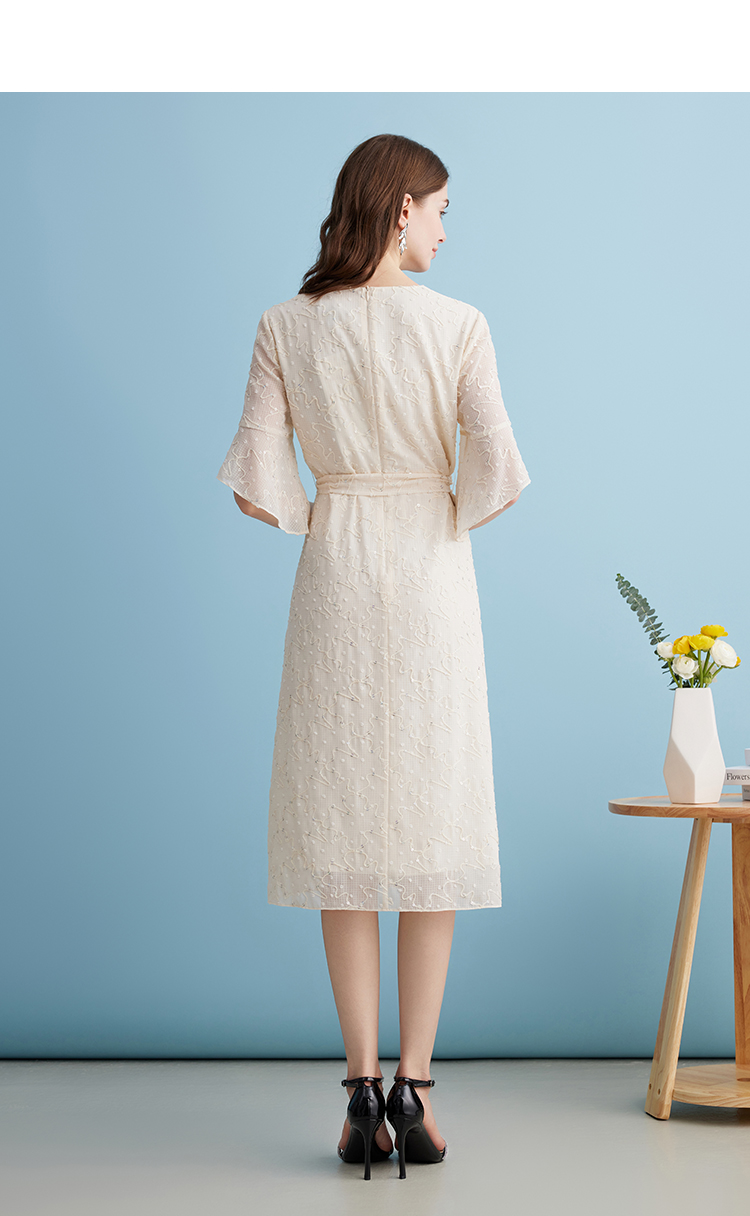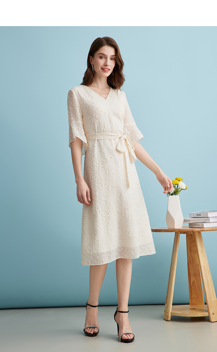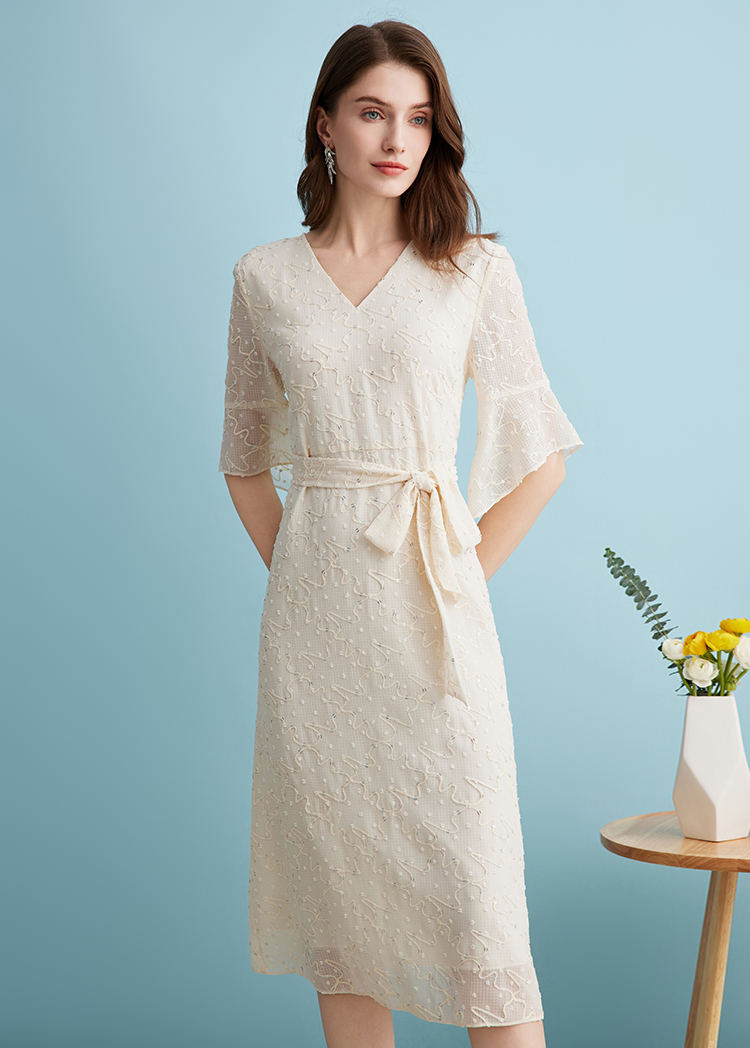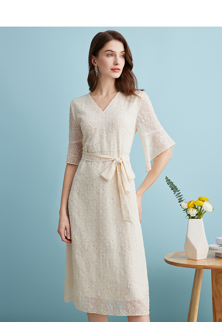 EITIE爱特爱时尚高级感绣花V领显瘦亮片中袖连衣裙夏新款B2407328