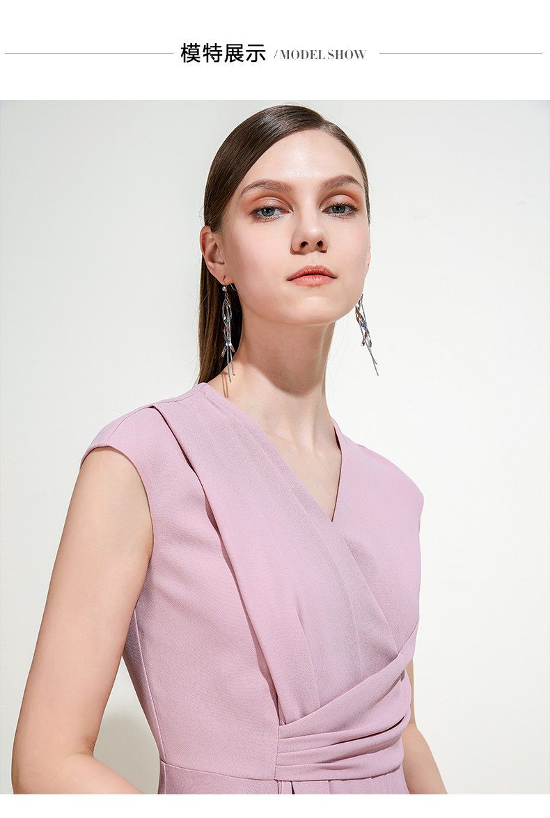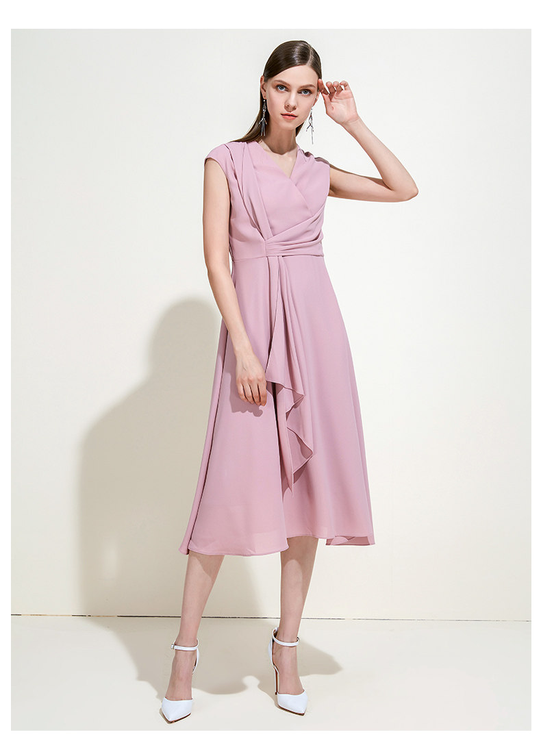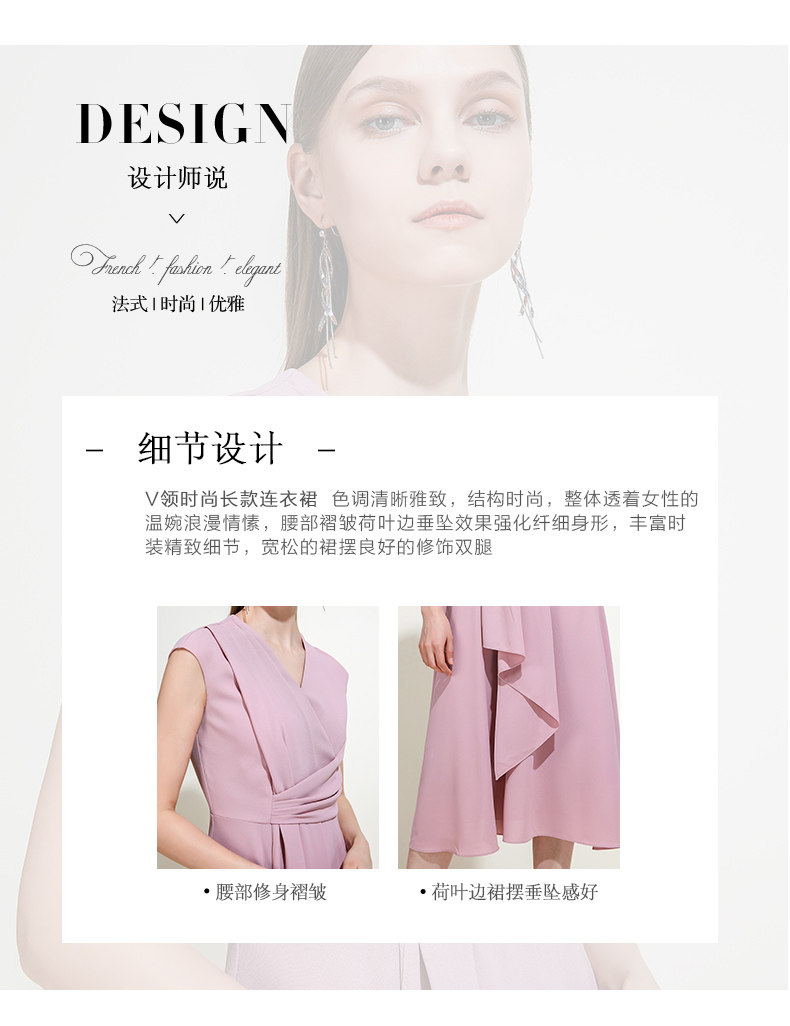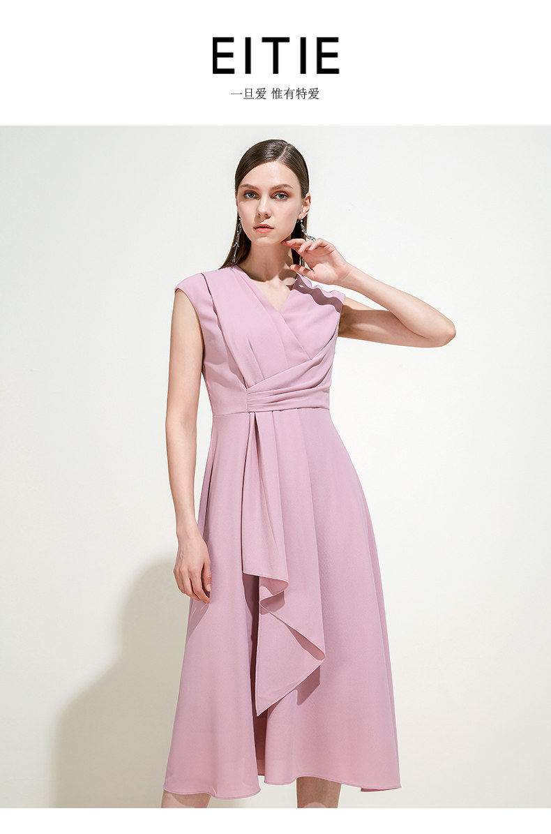 EITIE爱特爱女装夏季新高腰显瘦无袖荷叶边V领时尚长款连衣裙5907621