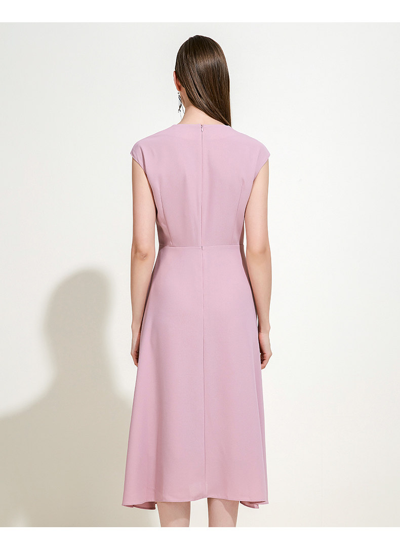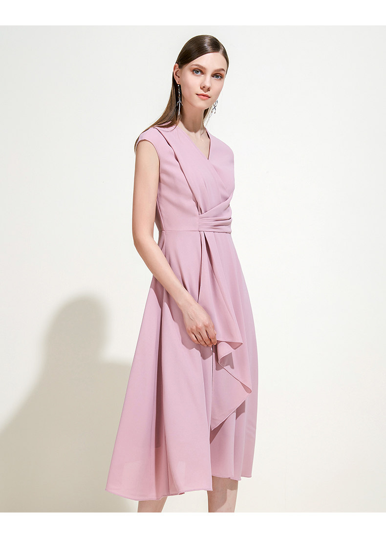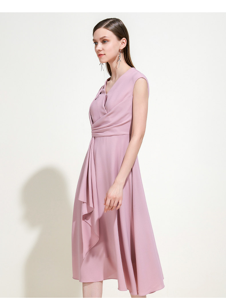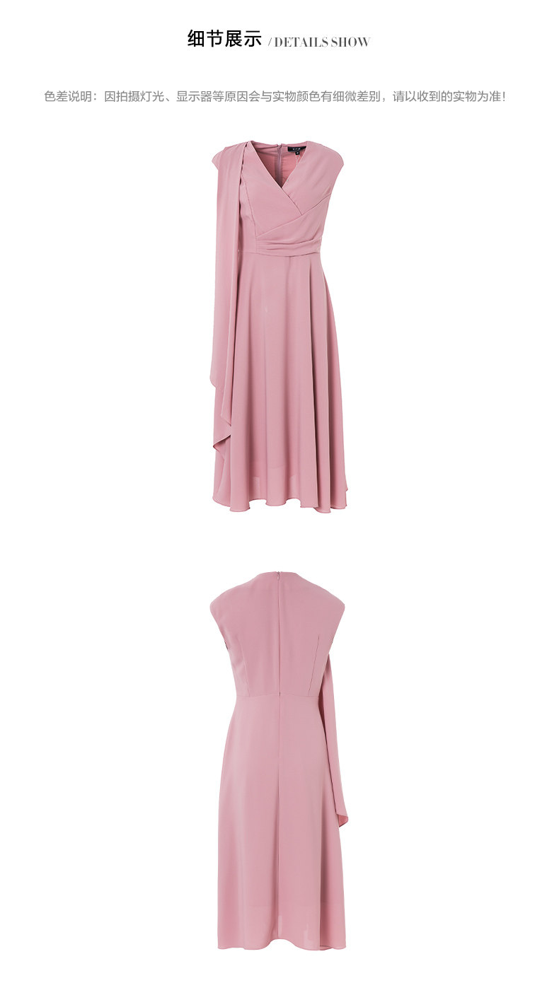 EITIE爱特爱女装夏季新高腰显瘦无袖荷叶边V领时尚长款连衣裙5907621
