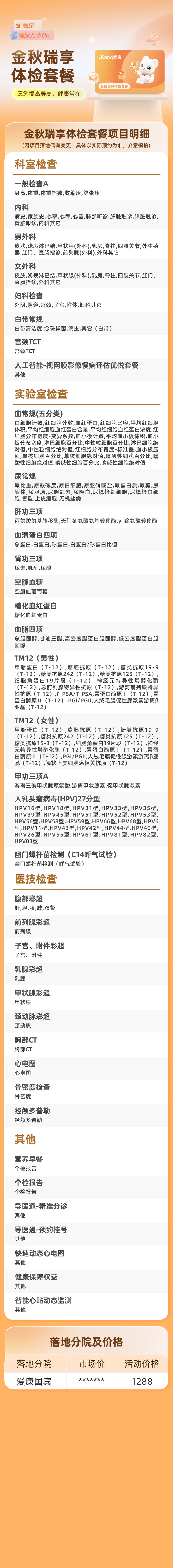 爱康国宾 福寿安康体检套餐A