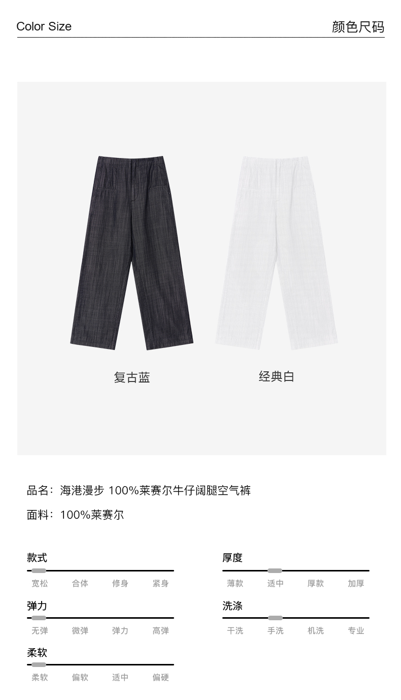 IN NAD ON 海港漫步 100%莱赛尔牛仔阔腿空气裤54401