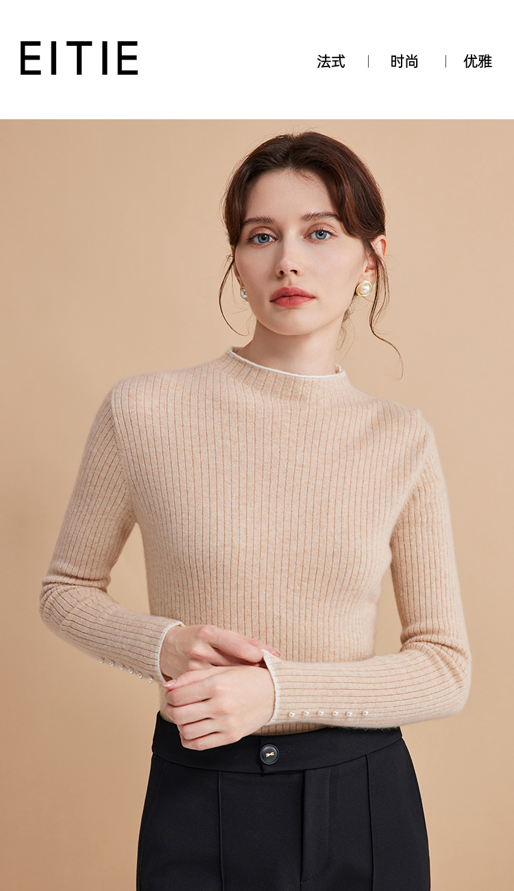 EITIE爱特爱冬季新款舒适半高领百搭打底基础100%山羊绒针织衫7601313