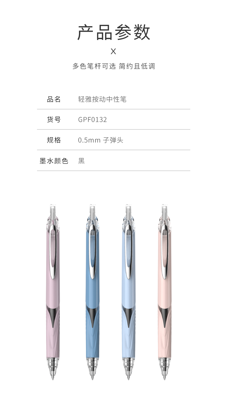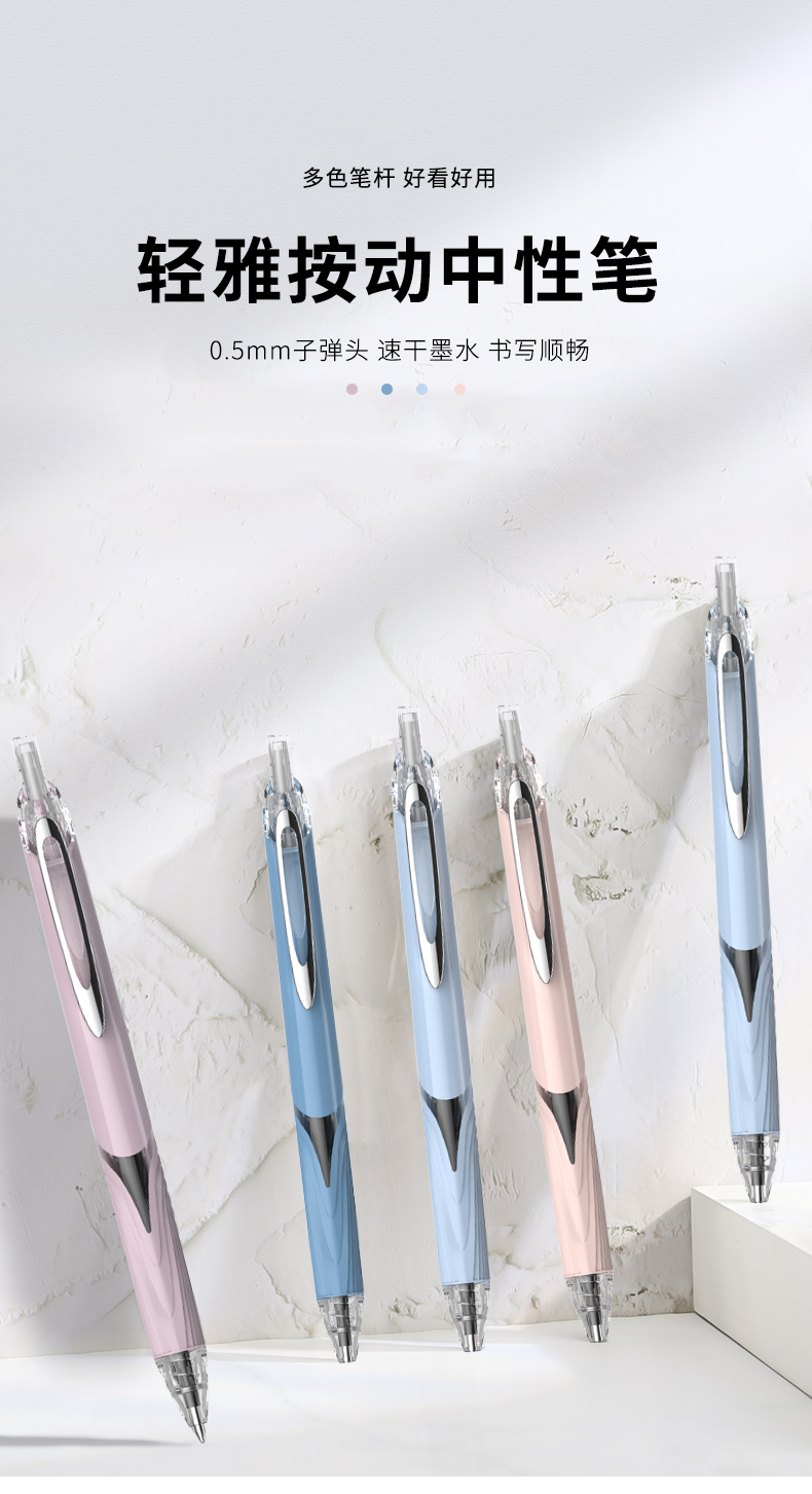【贝发】轻雅按动中性笔1盒12支笔杆颜色4色粉色紫色深蓝浅蓝每色3支(买1送1共2盒24支)