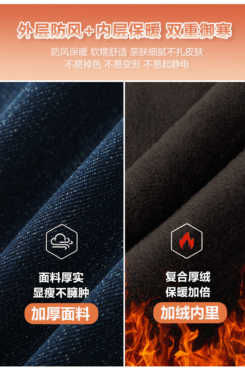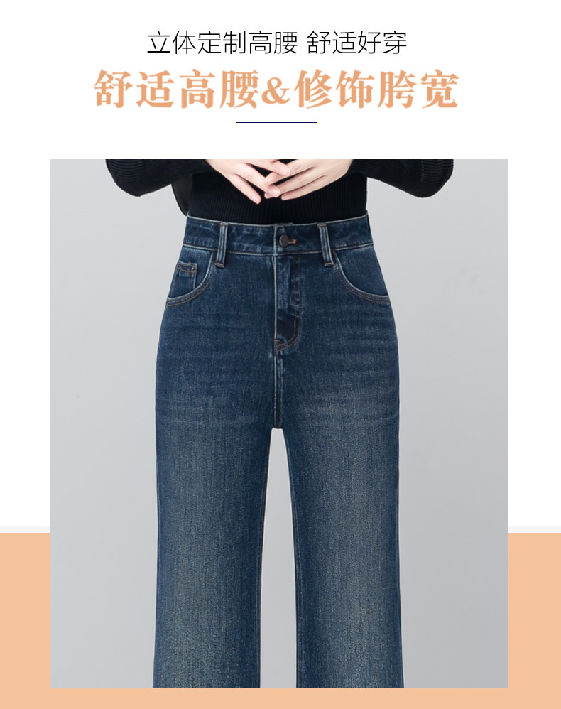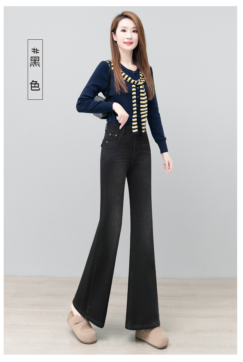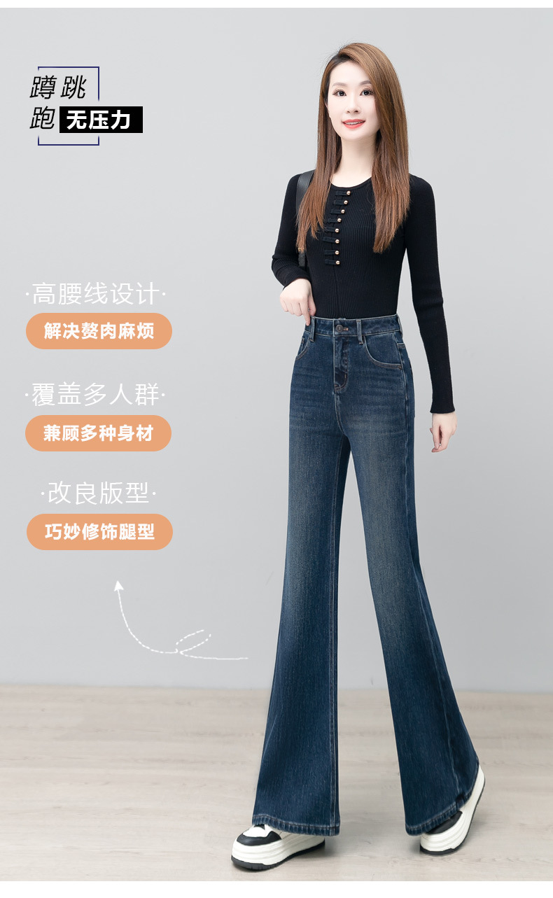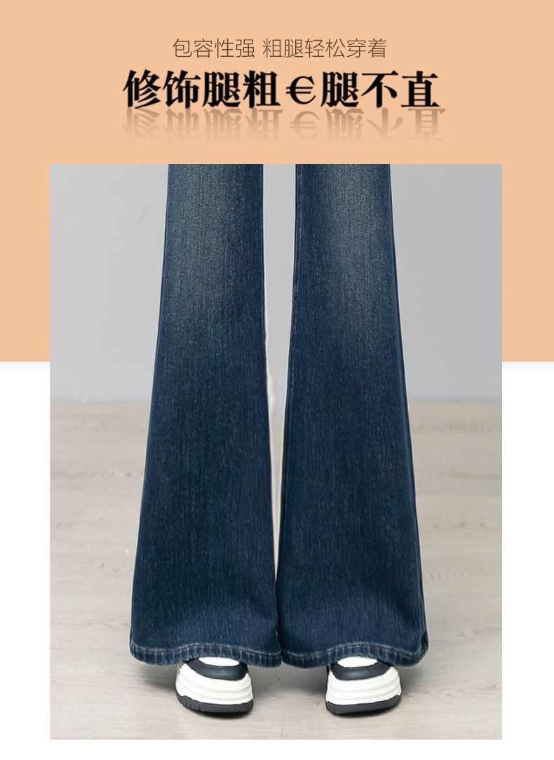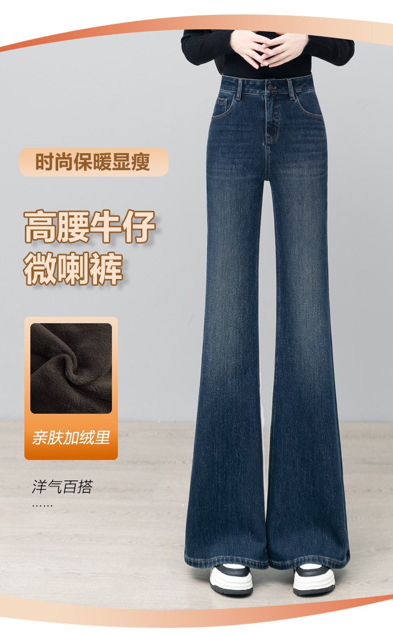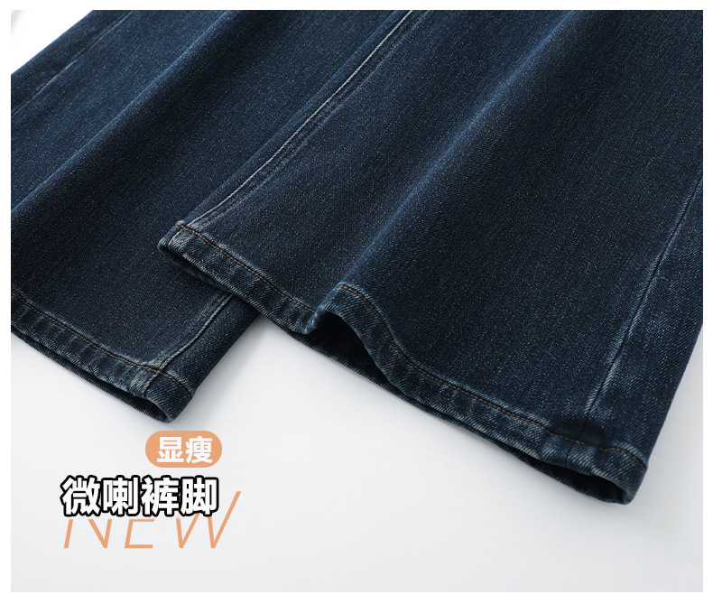 YM 2817复古蓝牛仔微喇裤加绒加厚休闲裤高腰弹力显瘦马蹄裤 商品图2