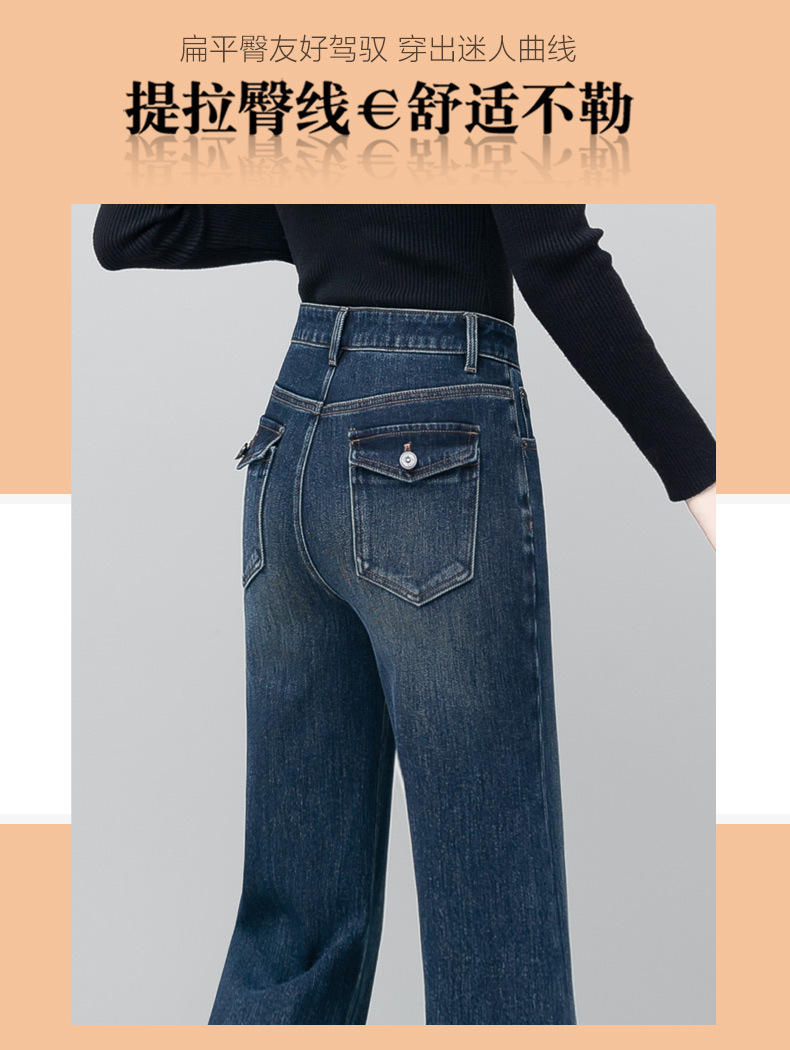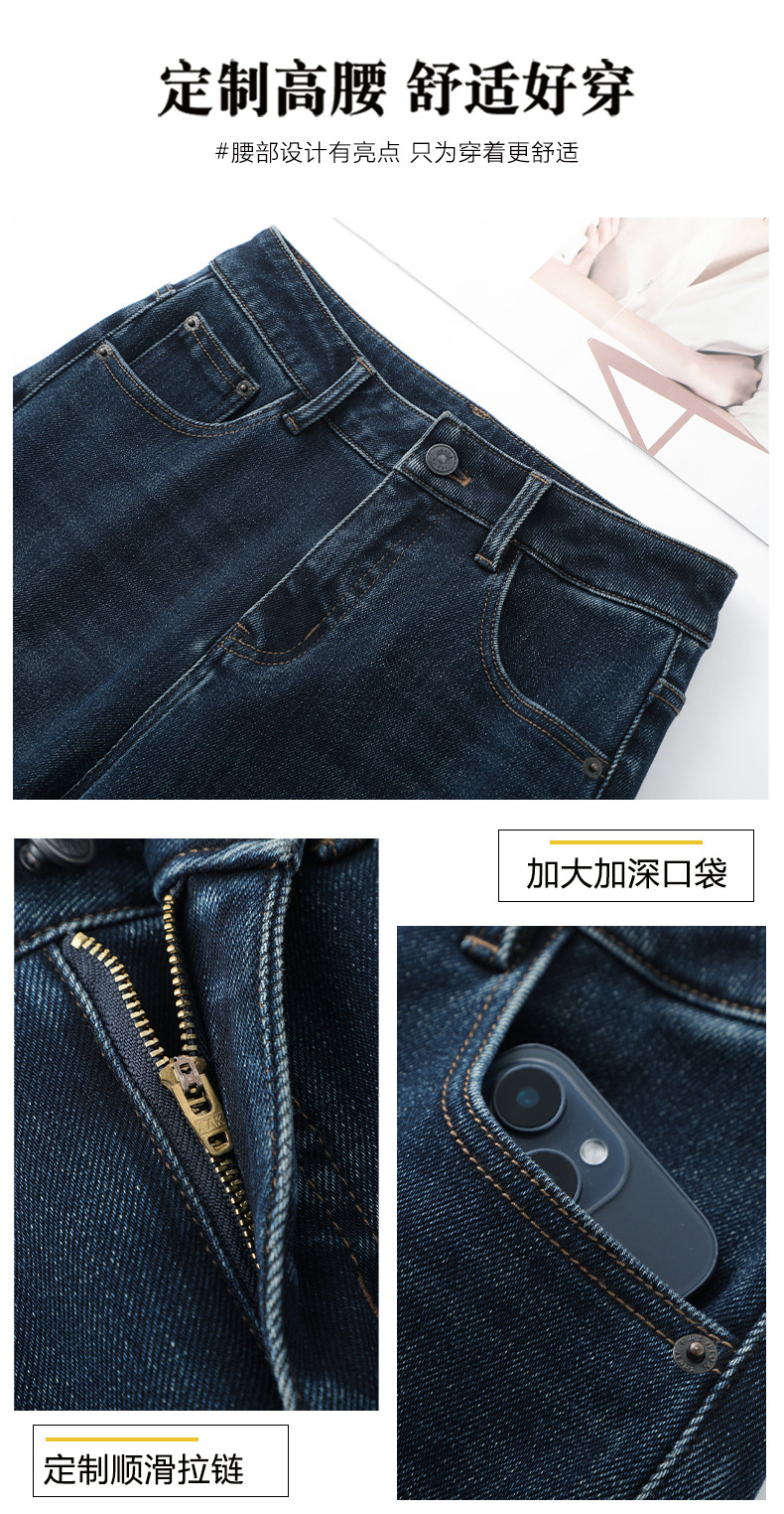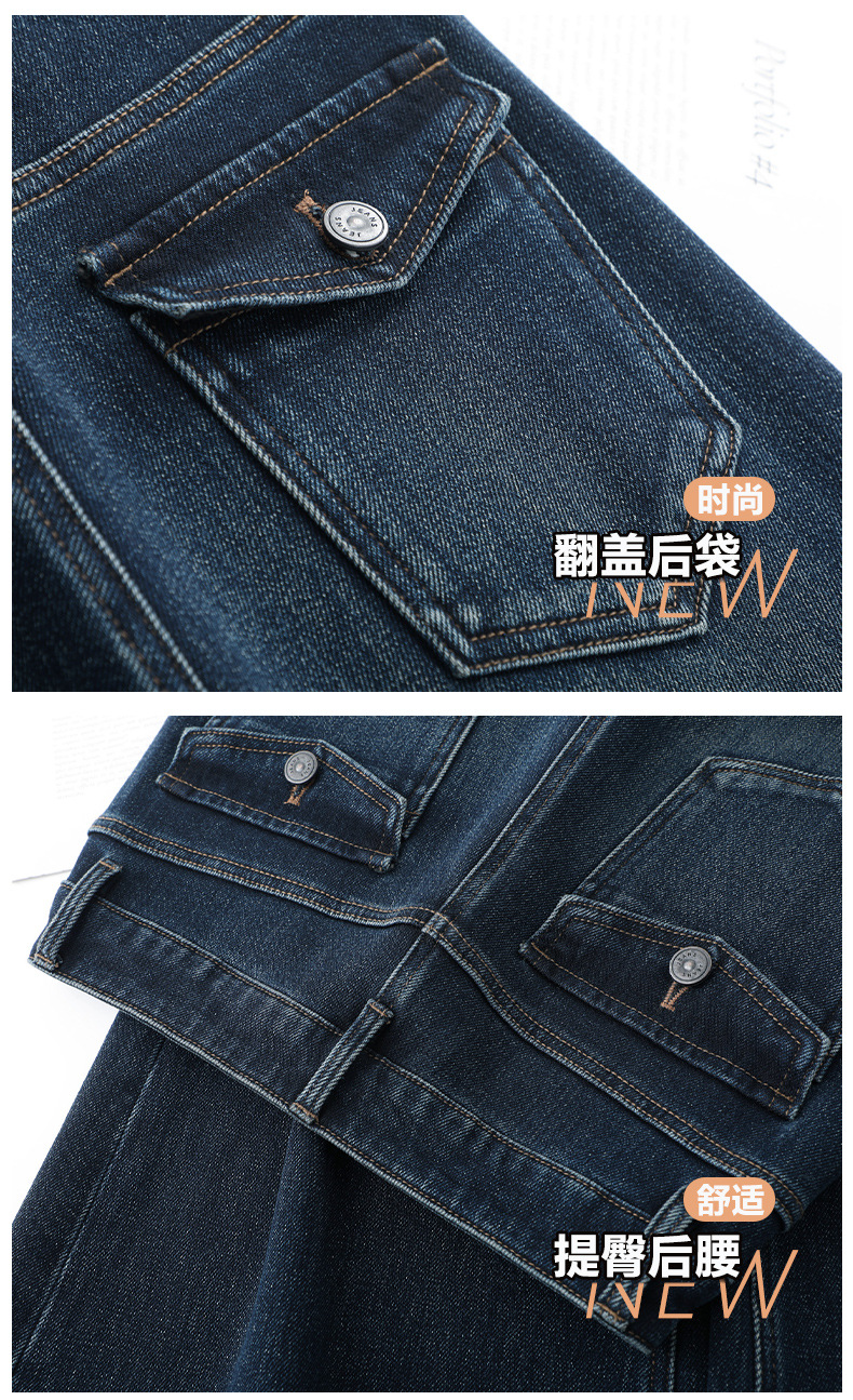 YM 2817复古蓝牛仔微喇裤加绒加厚休闲裤高腰弹力显瘦马蹄裤 商品图4