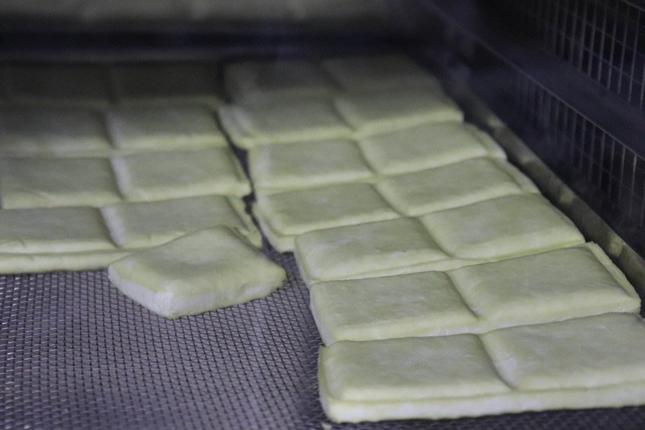 生产方式:有机大豆及纯净水打磨成豆浆,盐卤点卤成豆腐后,压除水分烘干制成。加工过程不使用消泡剂、防腐剂等。