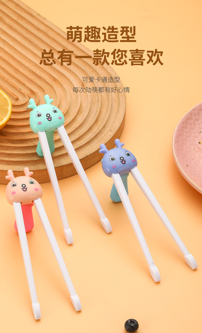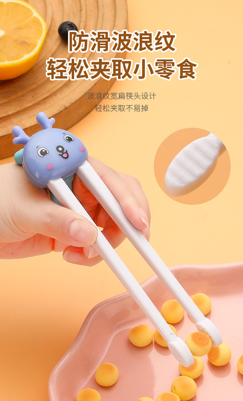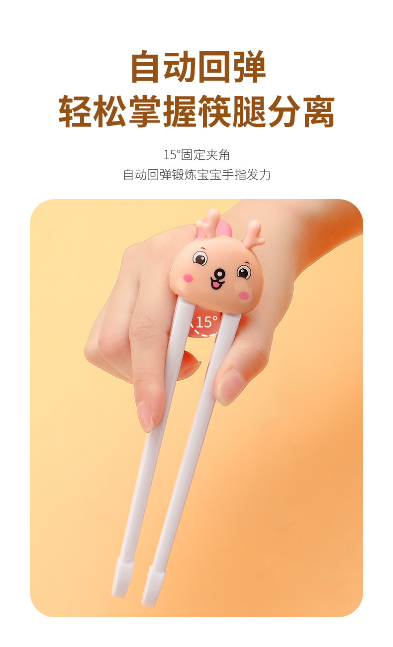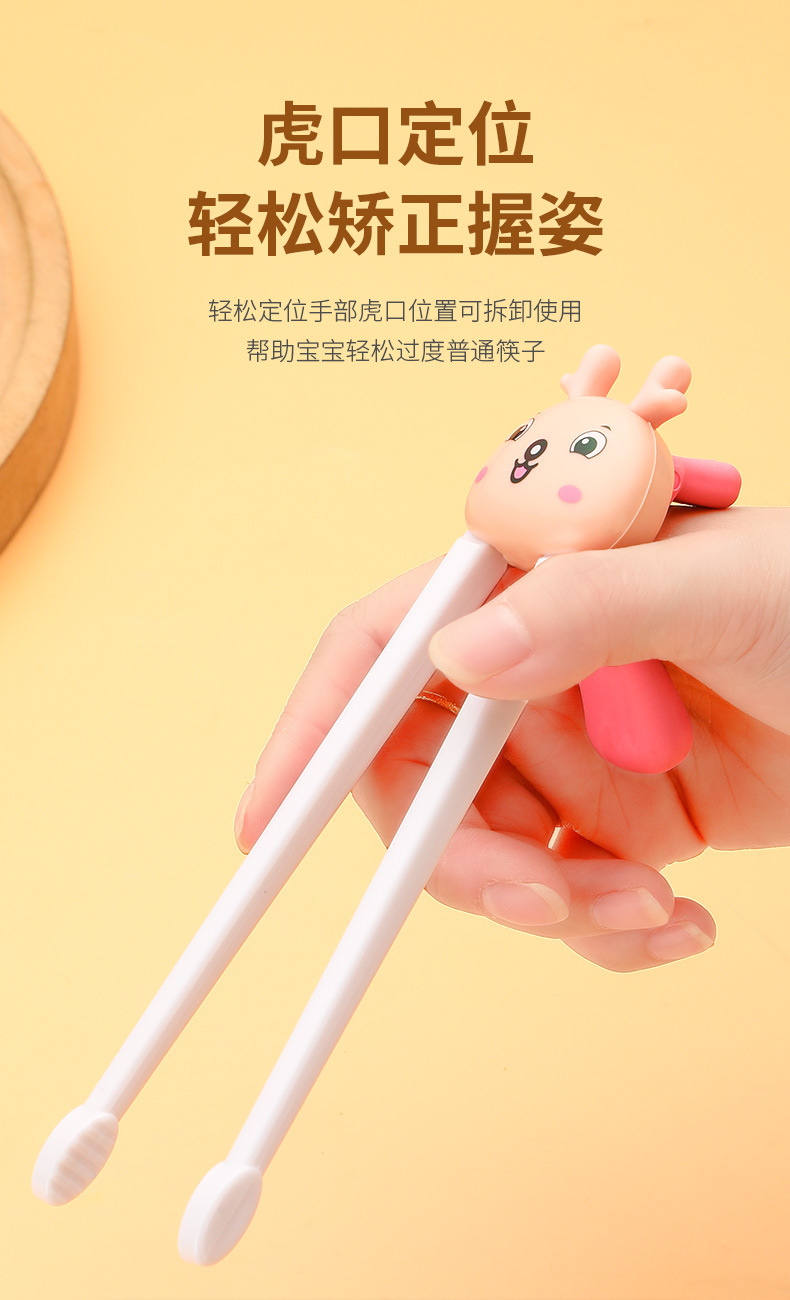 【科学用筷,自主进食好伙伴】卡通虎口回弹学习筷 儿童筷子 宝宝左右手学吃饭训练筷 一段辅助筷-QQ