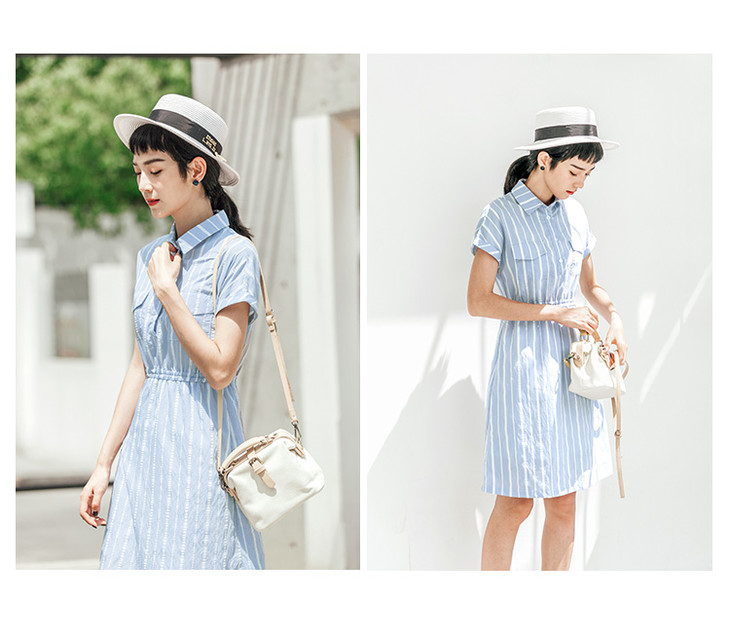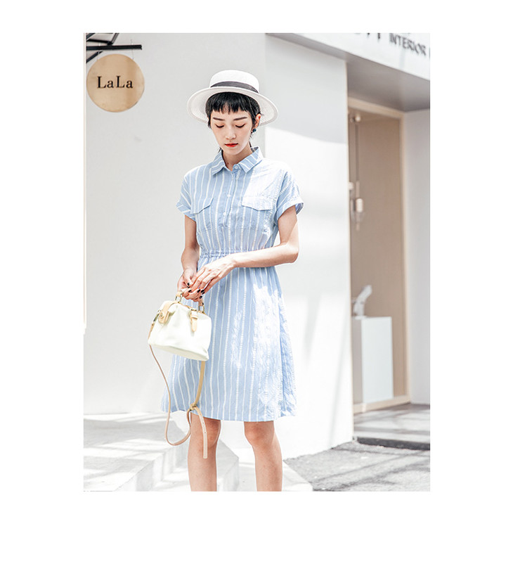 JIANG条纹短袖连衣裙2018夏装新款小清新显瘦衬衫裙子