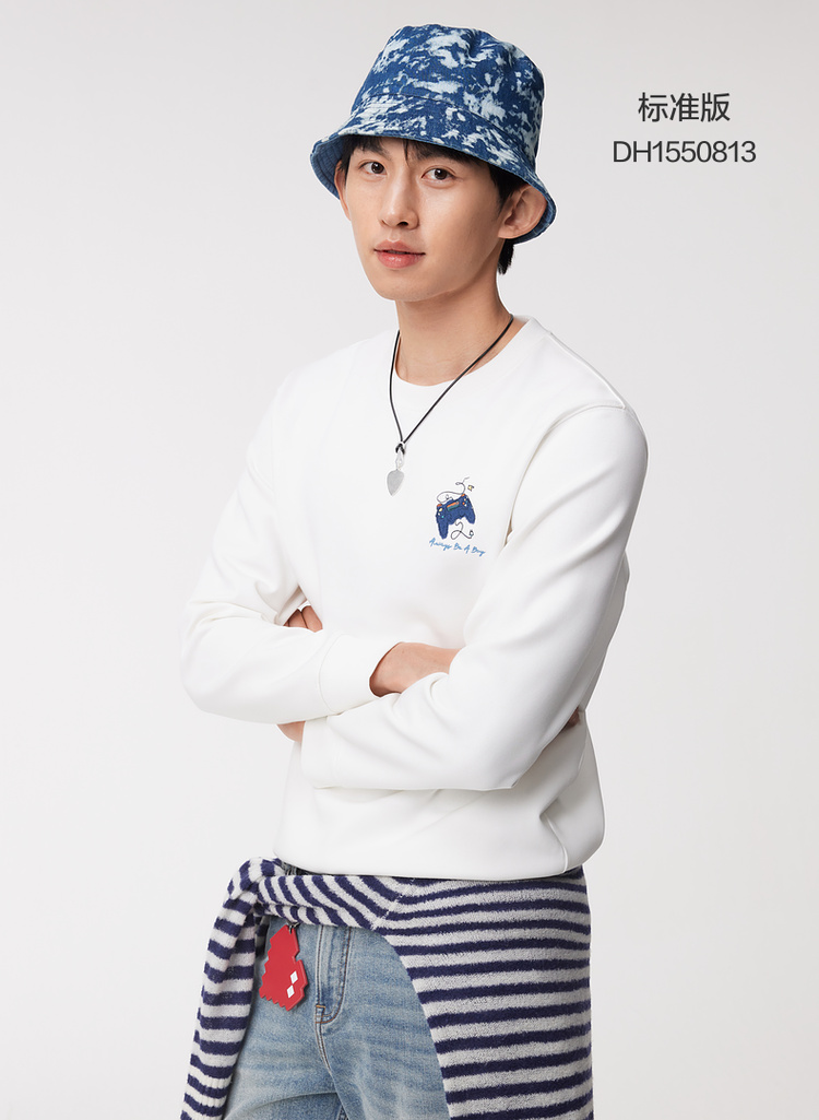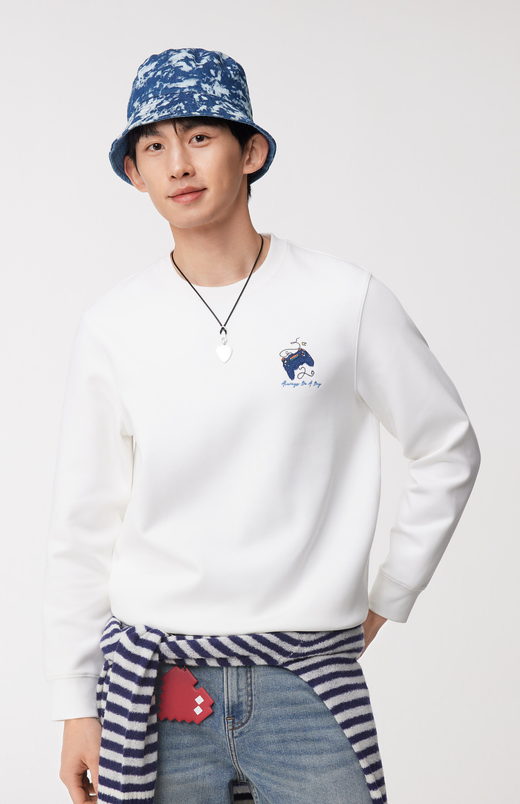 九牧王 主题刺绣 秋季保暖舒适圆领卫衣DH15508