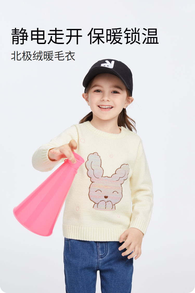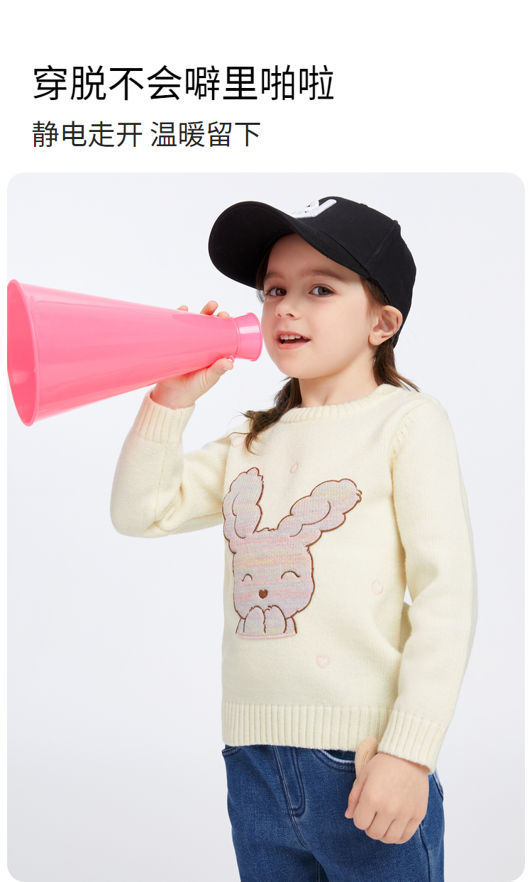 女童毛衣宝宝冬新款卡通保暖圆领长袖针织衫安奈儿童装TG344198