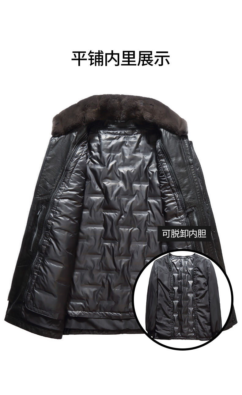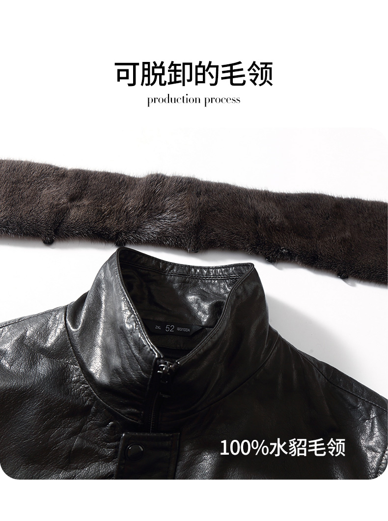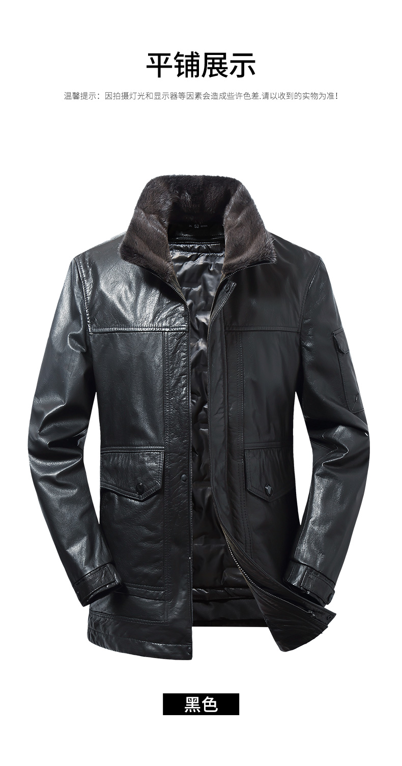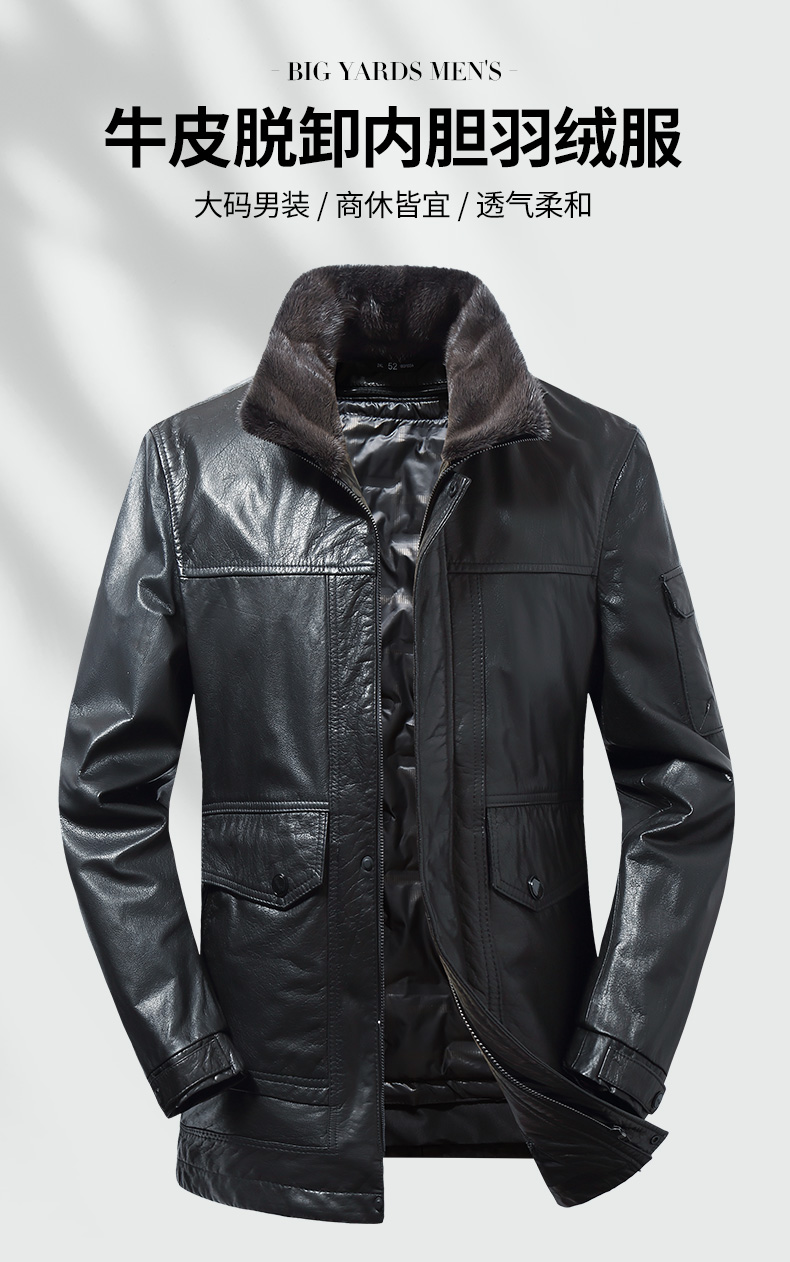 【可拆卸内胆】【水貂毛领】【真皮DSZ】大依优型大码立领羽绒真皮牛皮夹克外套休闲简约大号皮夹克真皮皮草加肥加大