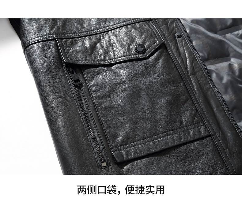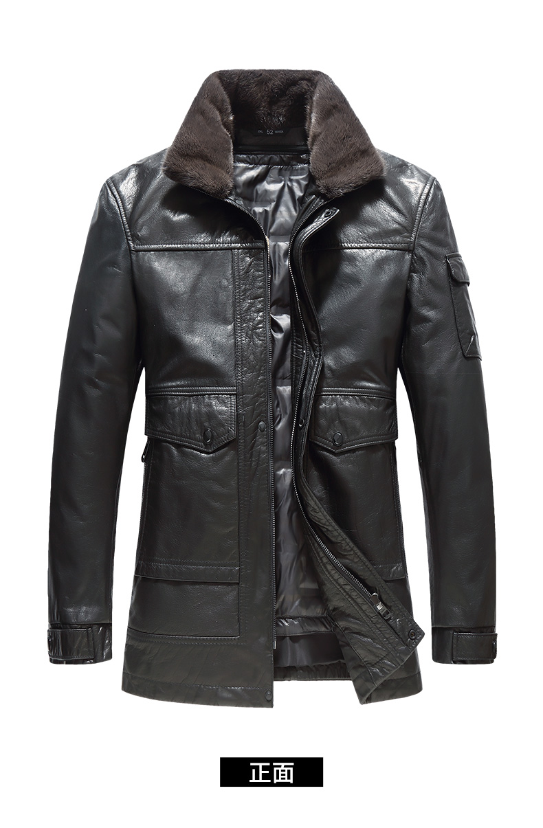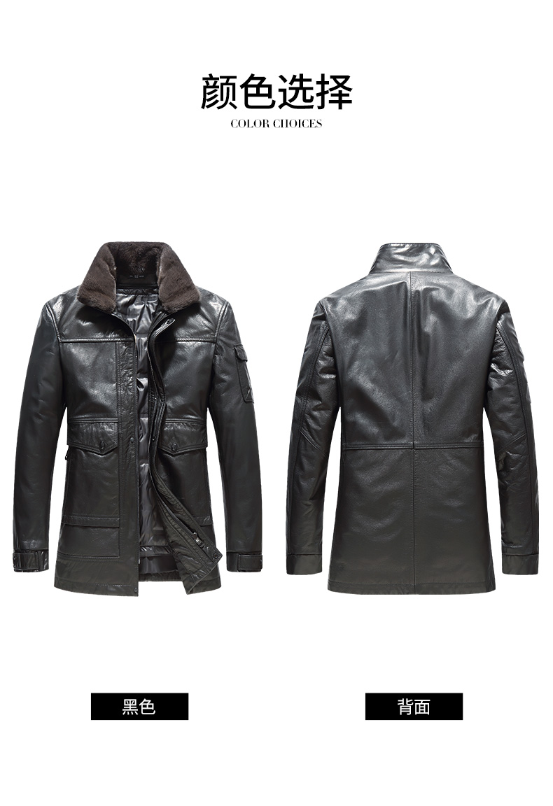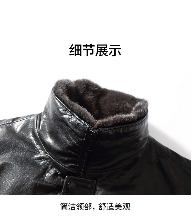 【可拆卸内胆】【水貂毛领】【真皮DSZ】大依优型大码立领羽绒真皮牛皮夹克外套休闲简约大号皮夹克真皮皮草加肥加大