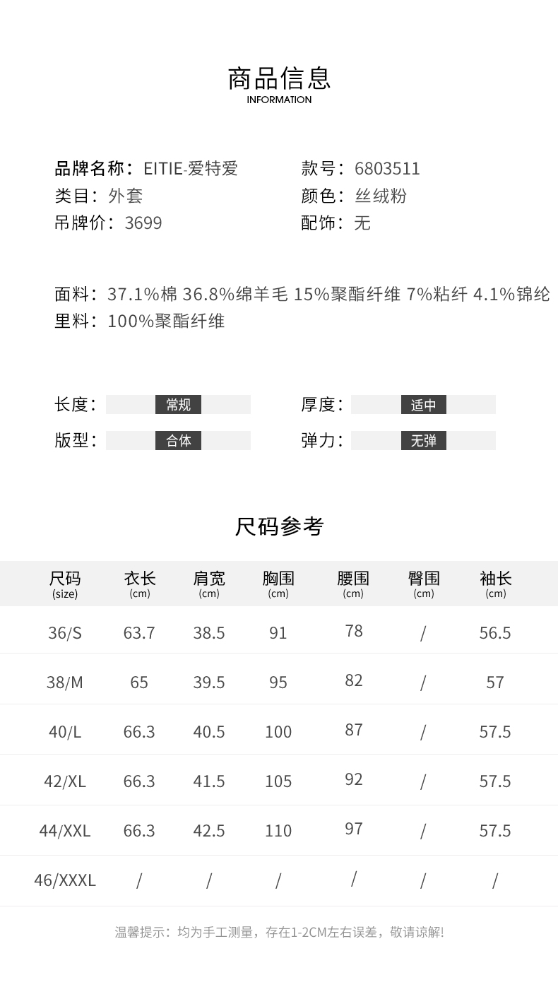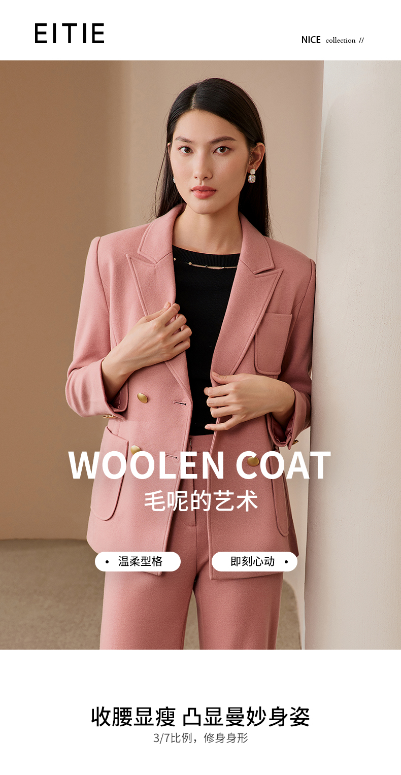EITIE爱特爱冬季新款保暖翻领洋气显瘦短款毛呢外套6803511