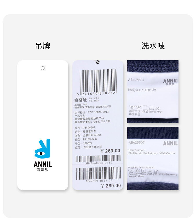 男童活力工装五分裤裤子新款安奈儿童装实体店同款AB426607