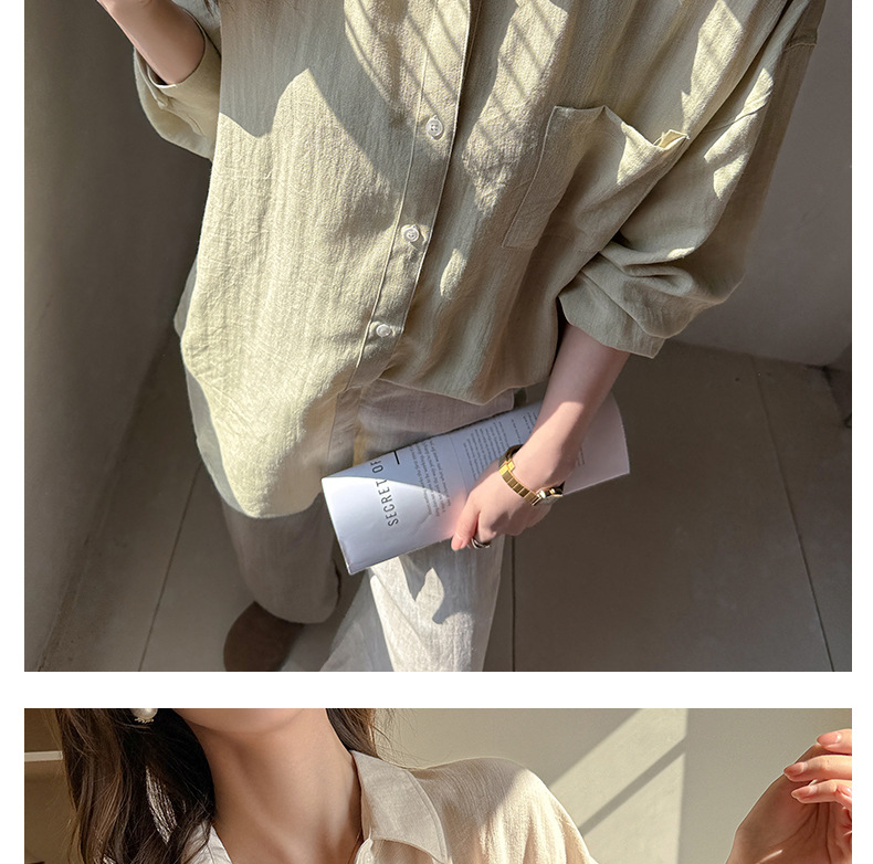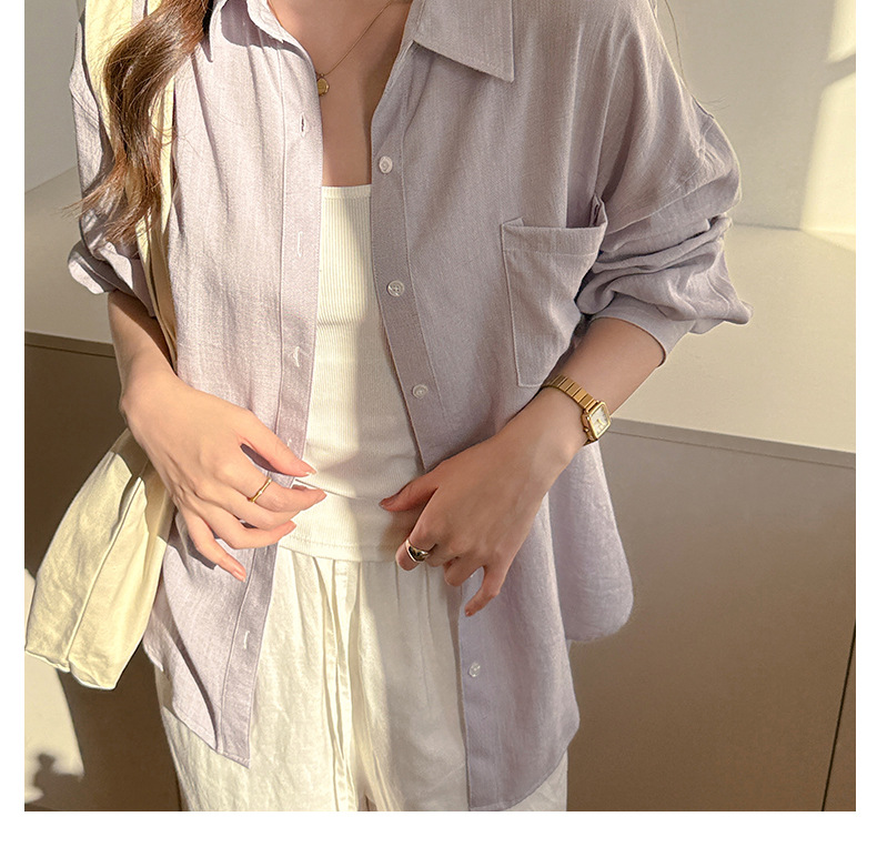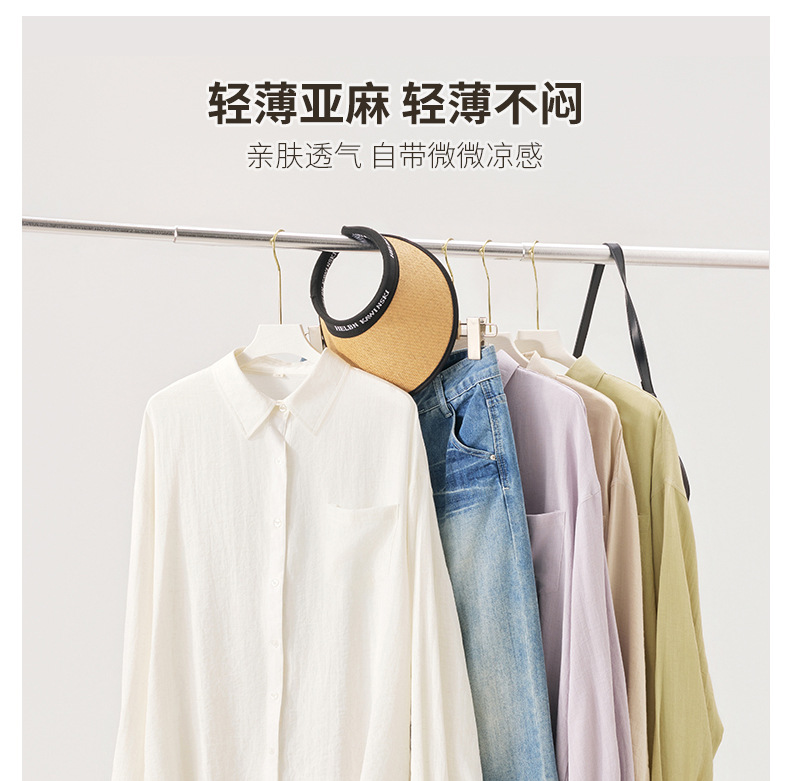 智性老钱风轻氧亚麻衬衫 春夏防晒女士衬衫轻奢高级感长袖外穿薄款纯色外套