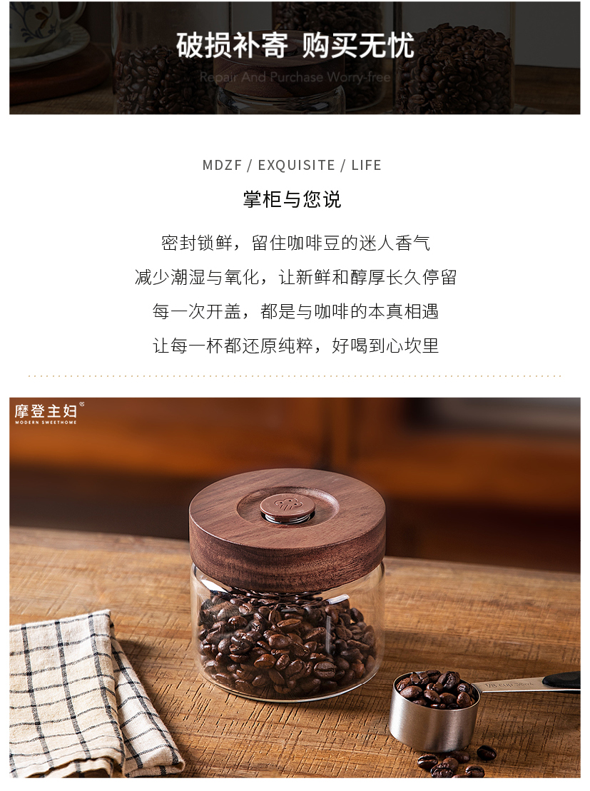 摩登主妇咖啡豆密封罐食品级真空茶叶奶粉收纳储存罐咖啡粉保存罐