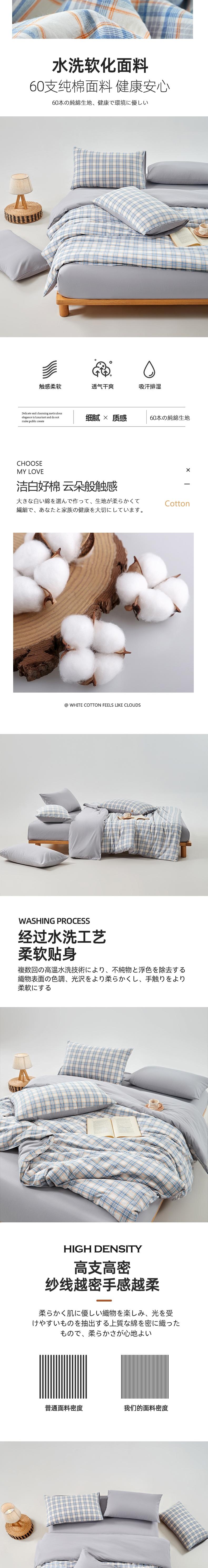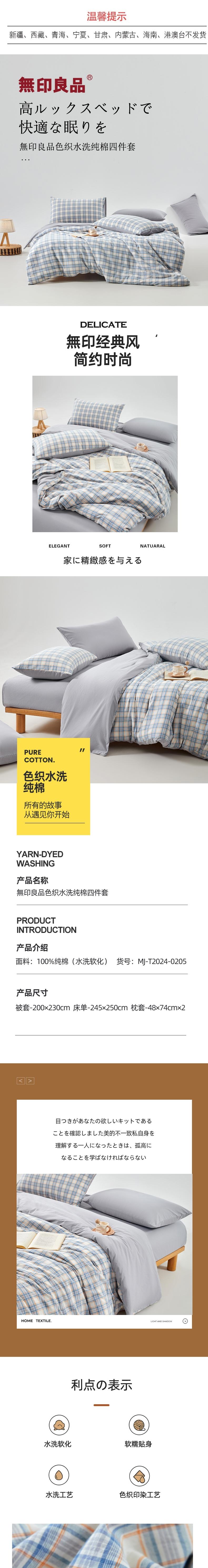 無印良品 色织水洗纯棉四件套-清欢200x230cm MJ-T2024-0205-1