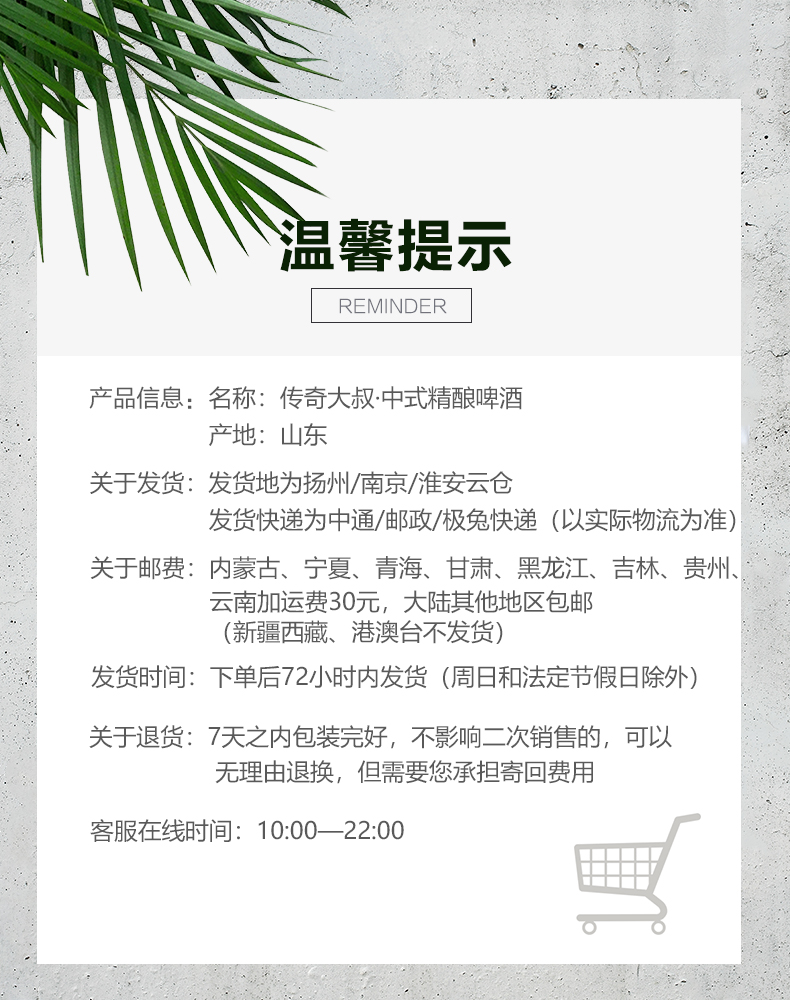 温馨提示:拦截、拒收需扣除20元/箱,非质量问题7天无理由退货,运费需要客户自己承担,并扣除发出运费15元/箱