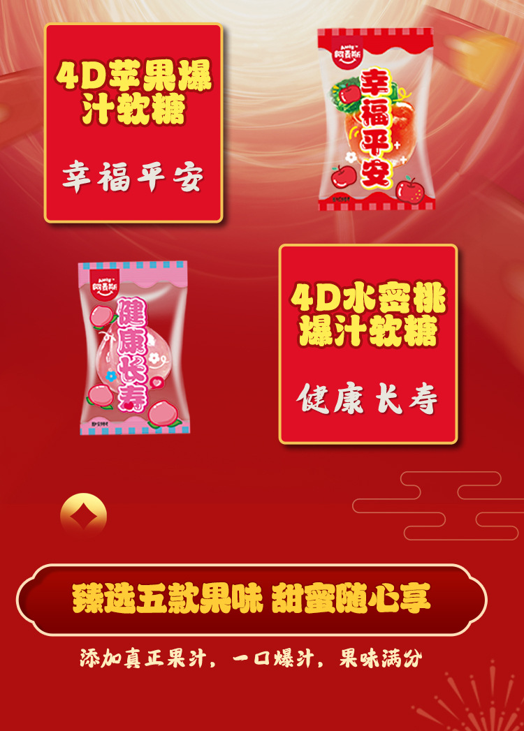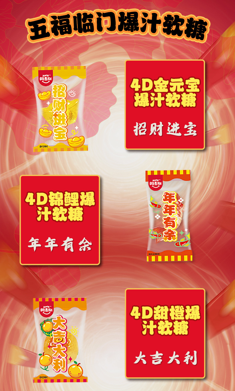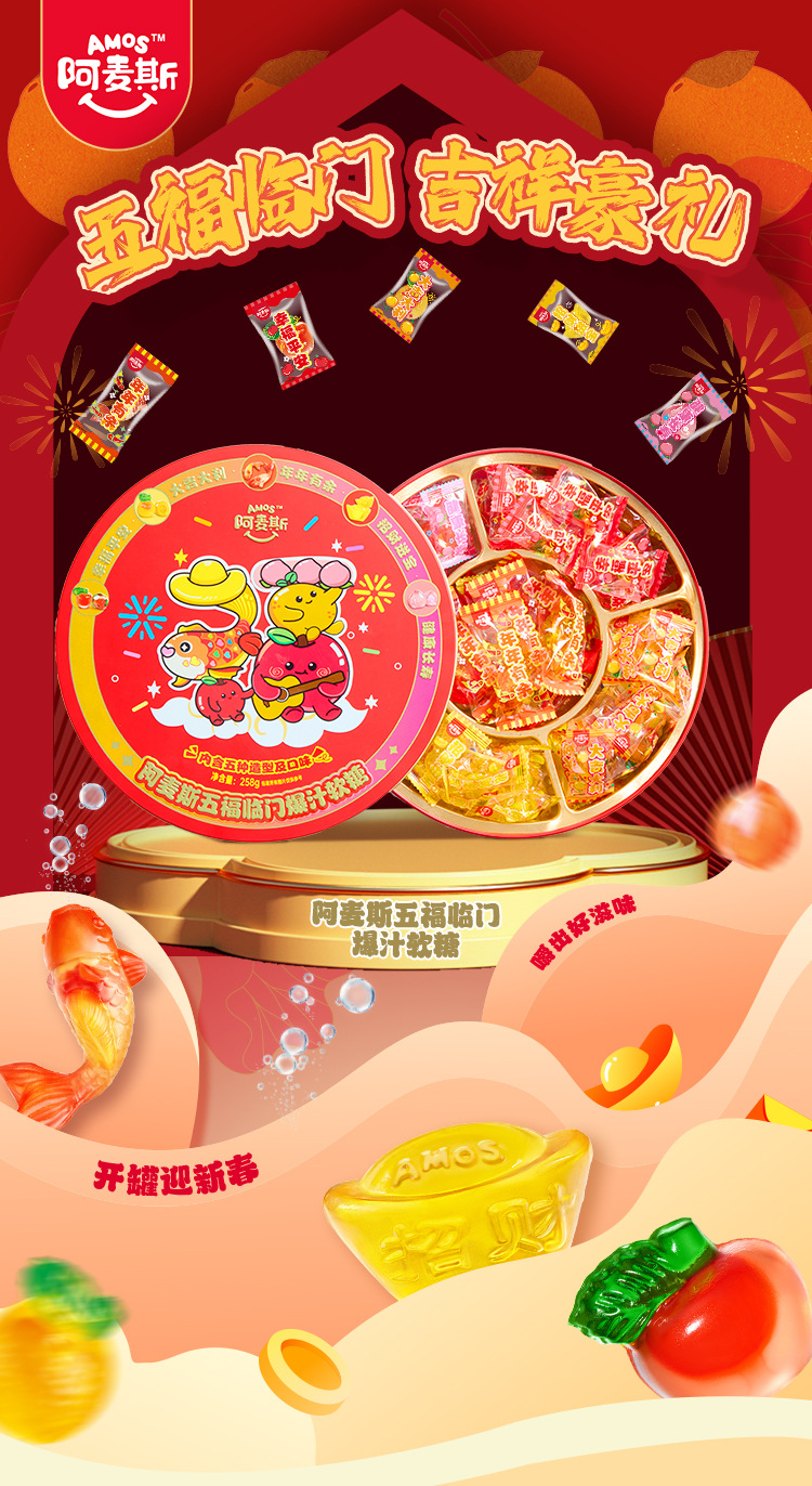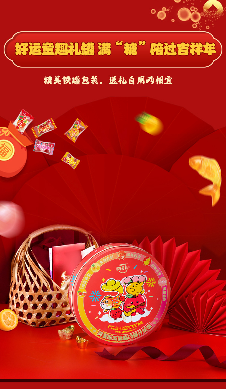 【欢聚一“糖”,五福开聚福满堂】春节年货节 甜橙水果爆浆软糖 喜糖零食糖果 年货节礼盒-QQ