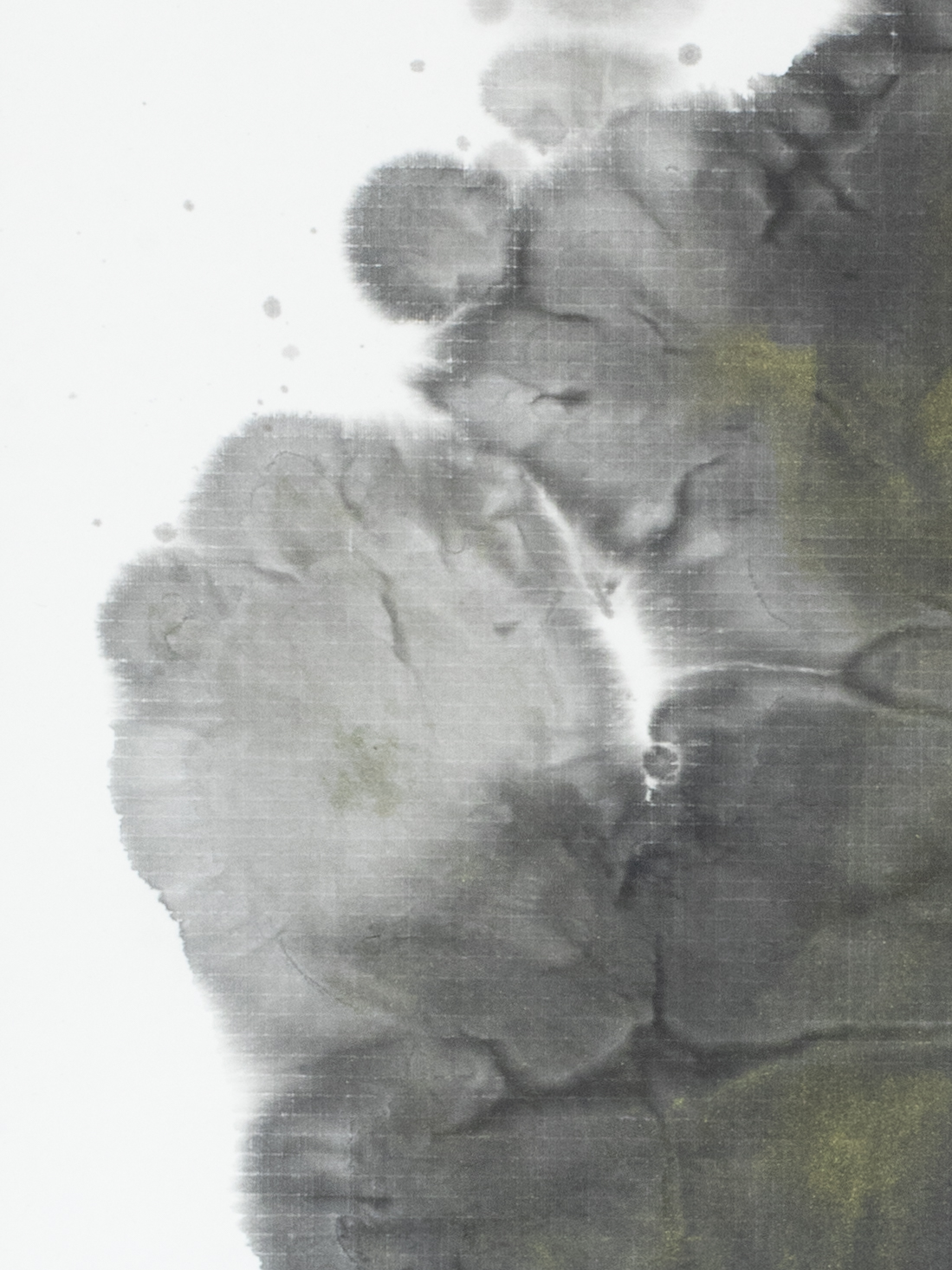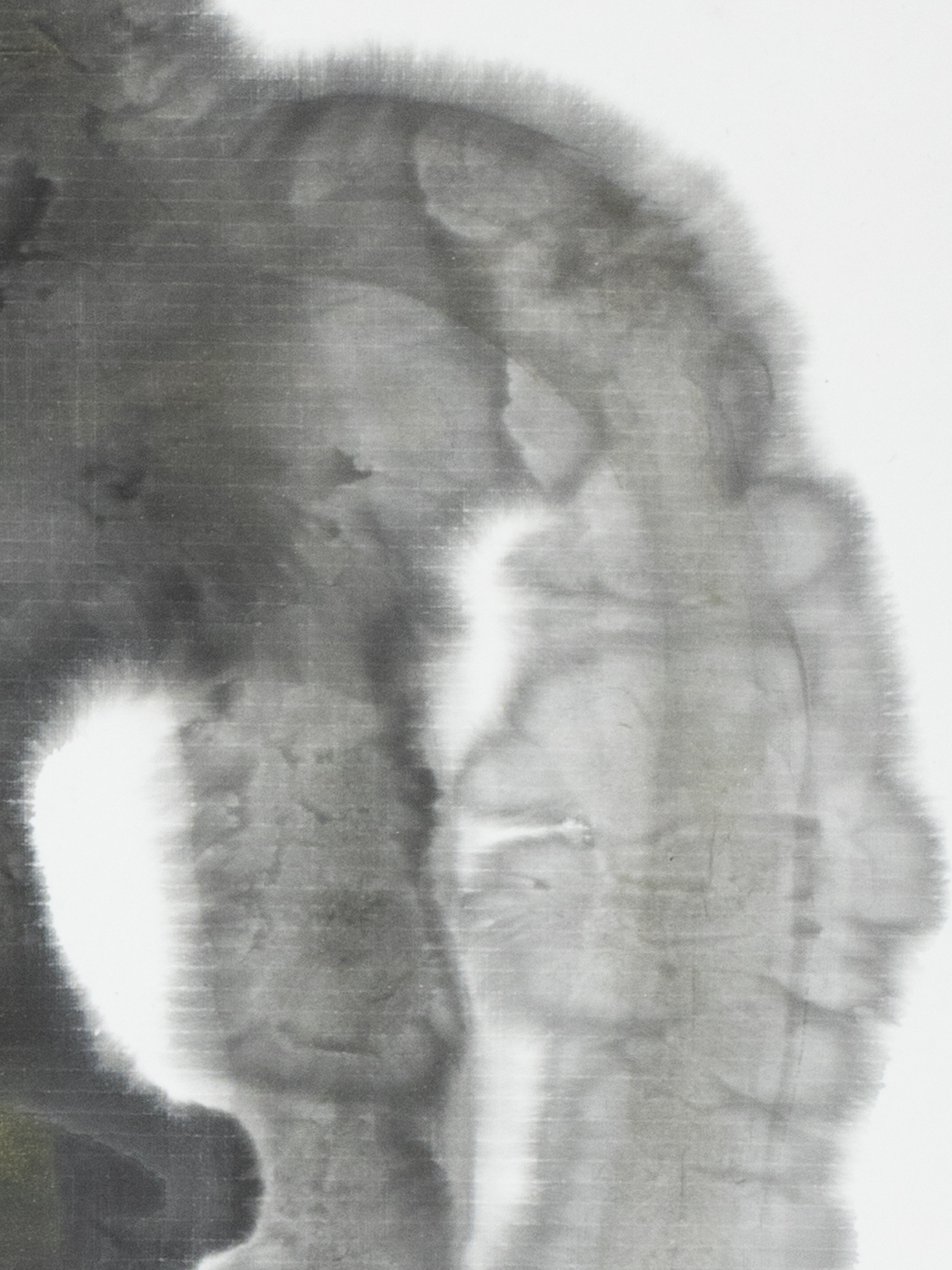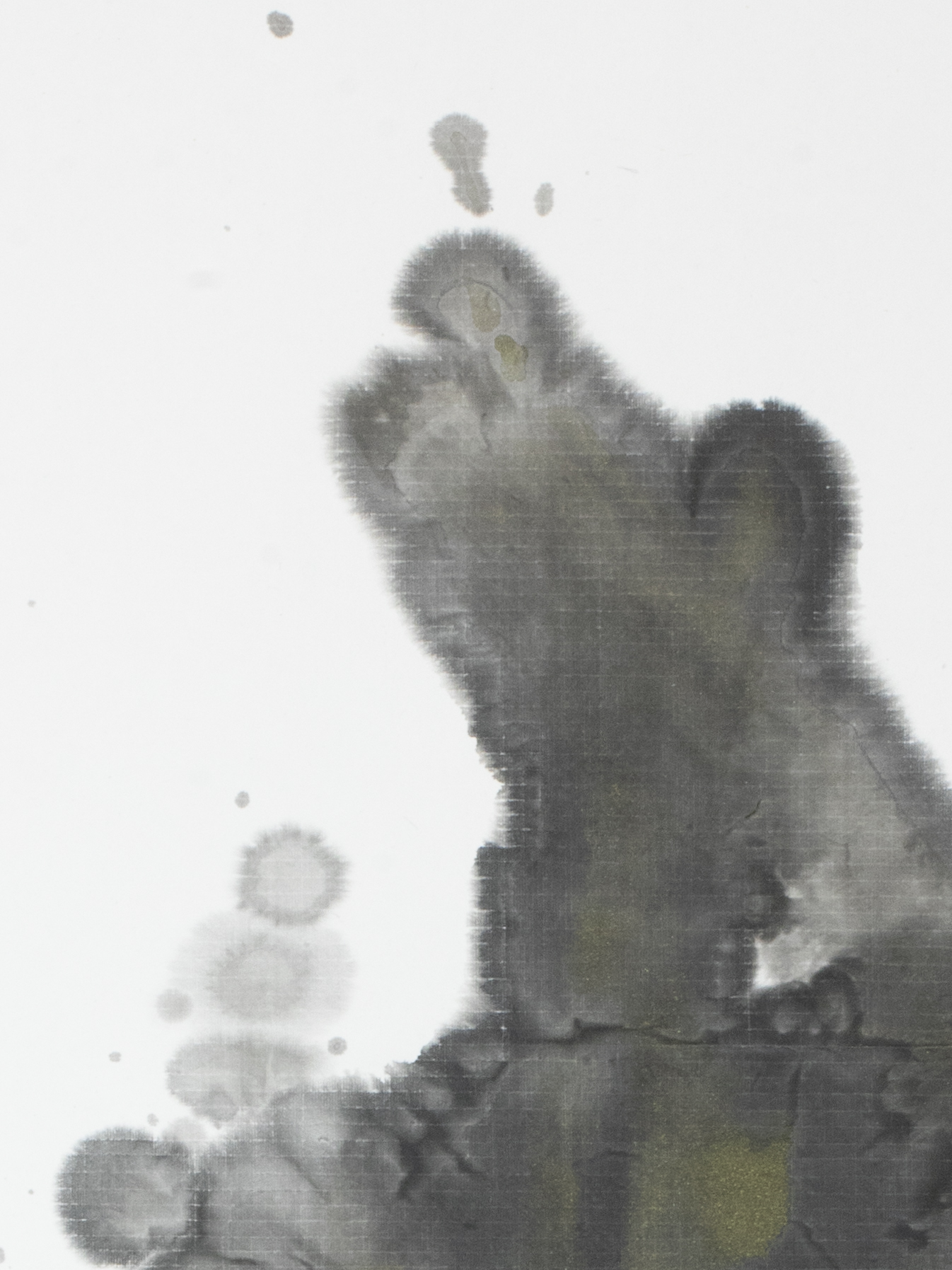左侧部分笔力饱满,质朴厚重,浓不凝滞,也达成了整幅画面的平衡感,右侧部分以形写意,用墨活气盎然,淡不浮薄,神采奕奕。