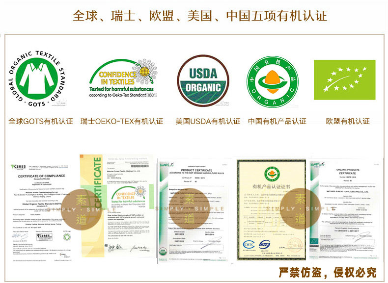 今天我们推荐一款有机12年的棉产品品牌——素道,母公司北京中星它拥有自己的有机彩棉种植基地,从源头把控。除了有自己的技术团队,研究彩棉种植以外,还有自己的有机棉加工车间,生产有机棉半成品(有机棉纱线、有机彩棉面料等),和终端应用有机棉产品(衣物、寝具等)。产品全线获得获得全球、瑞士、欧盟、美国、中国五项有机认证。