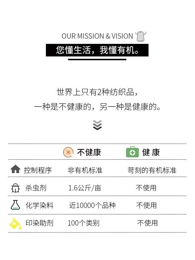 有机纺织品,无论是对自己的身体健康,还是对环境的保护,都是我们持续发展的一种选择。