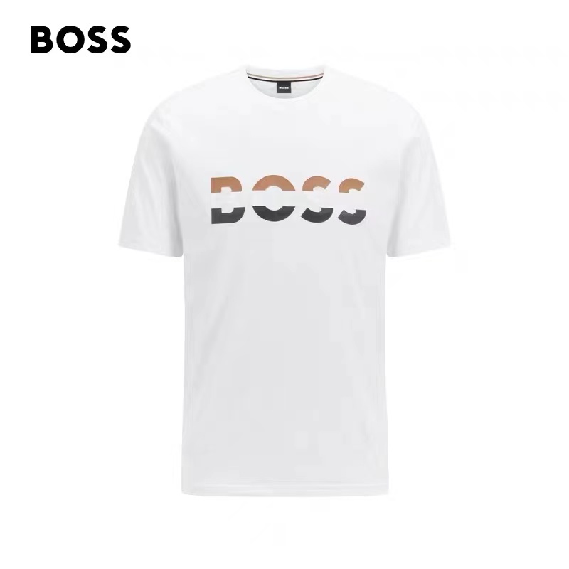 百货世界-HUGOBOSS雨果博斯男士2022春夏新款徽标图案印花棉质混纺T恤