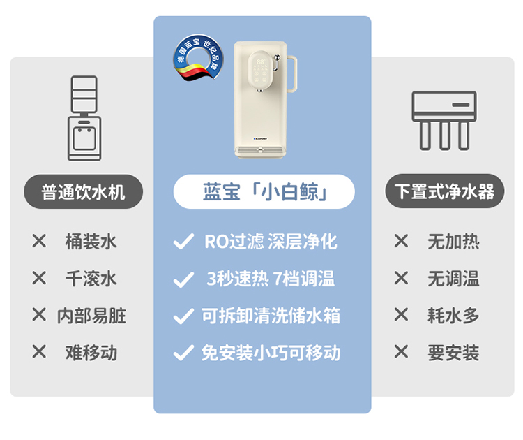【直降1200元】德国蓝宝台式净饮一体机家用净水器机自来水过滤即热饮水机小白鲸
