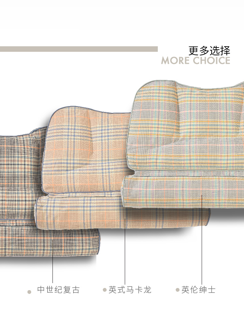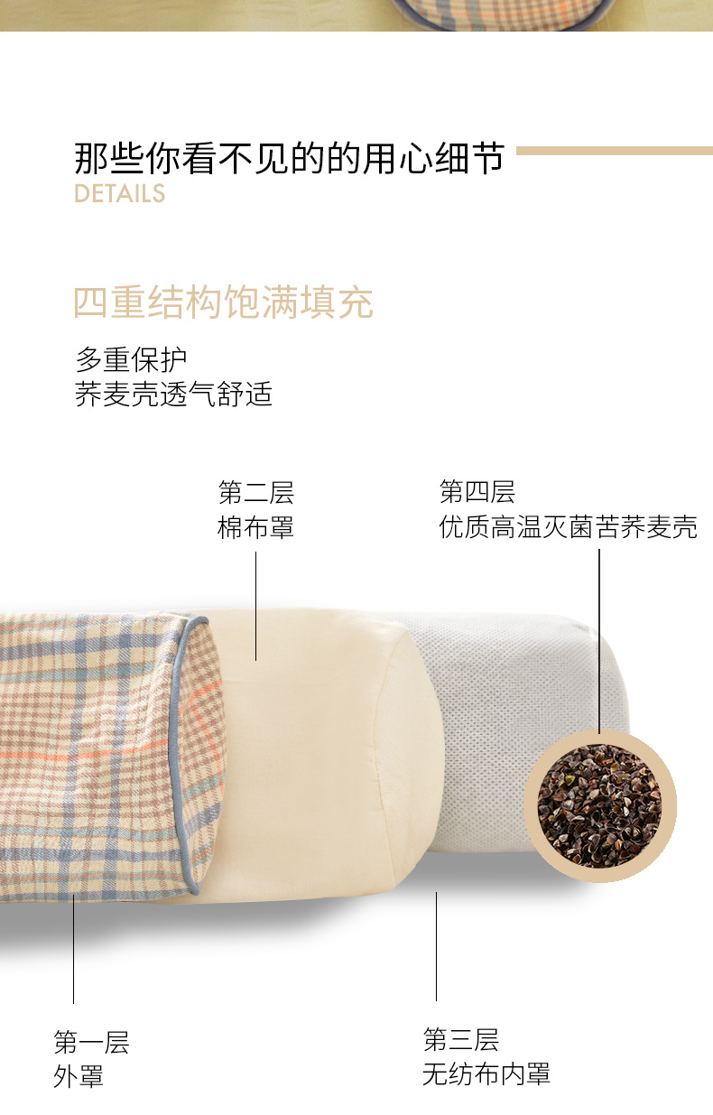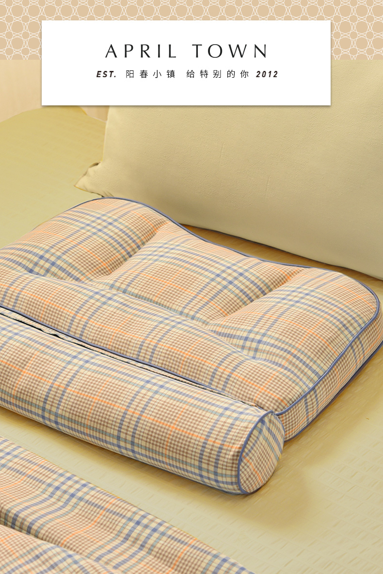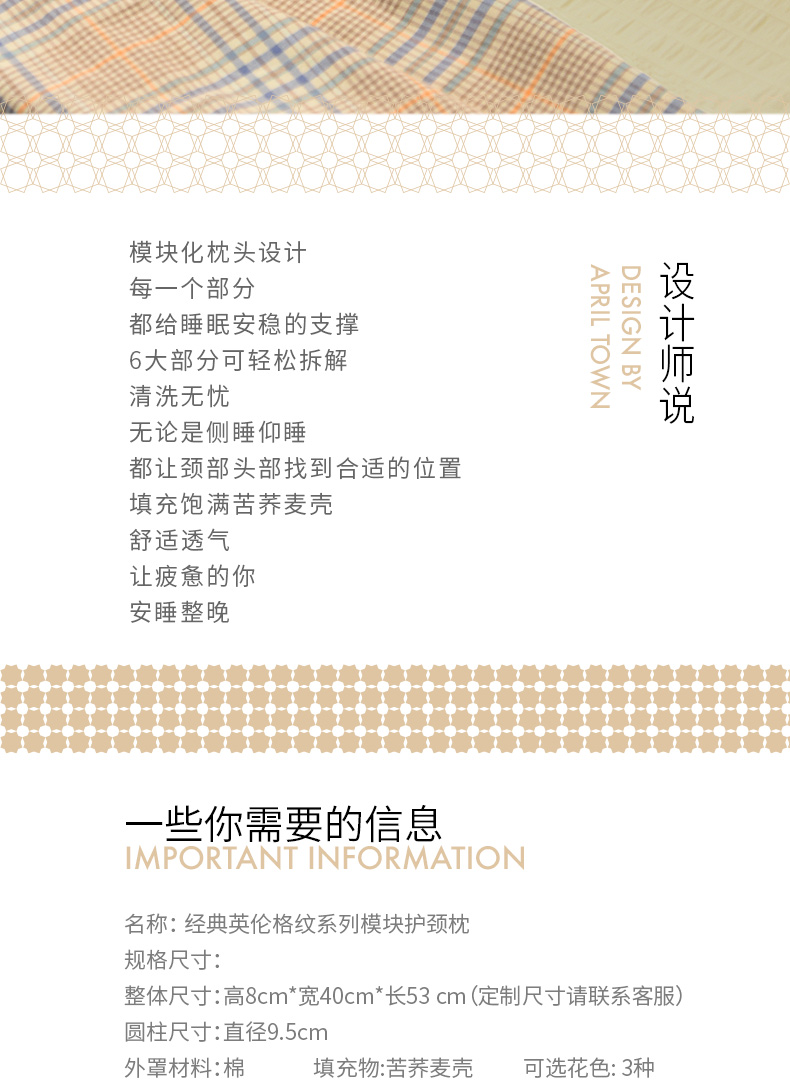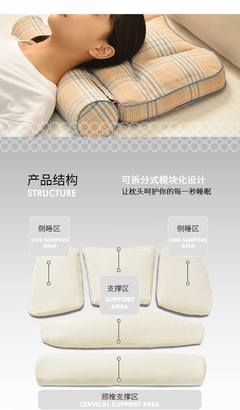 英伦格纹模块枕头分区护颈椎枕头纯全荞麦壳助睡眠