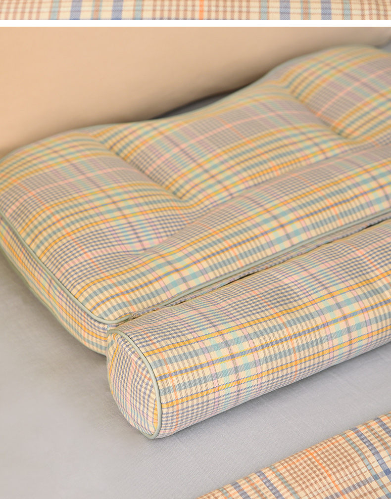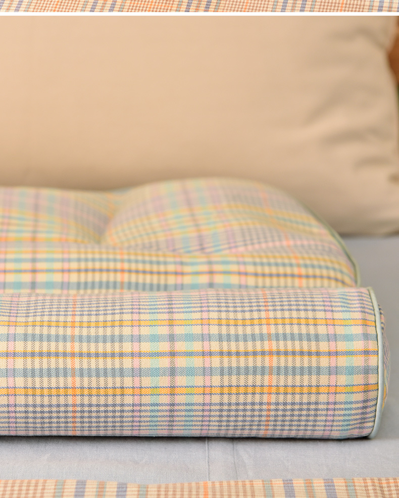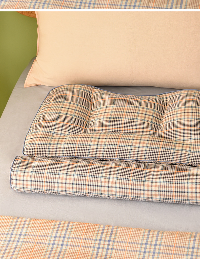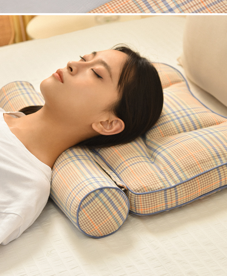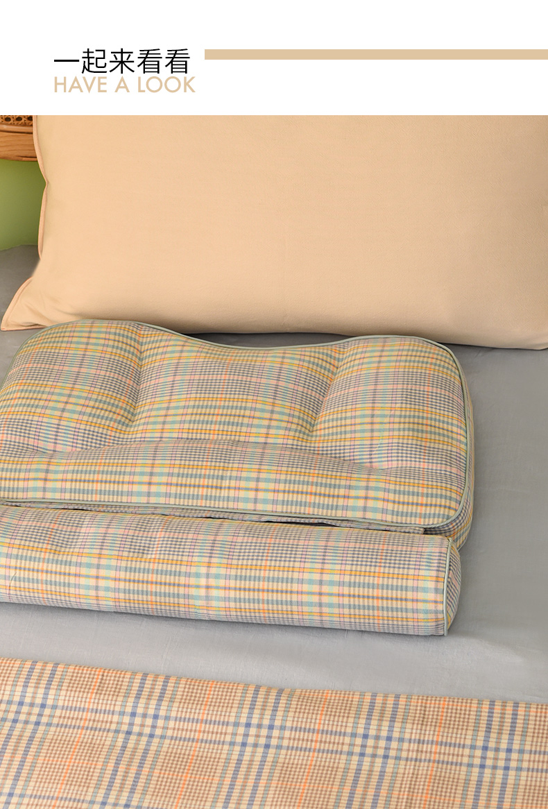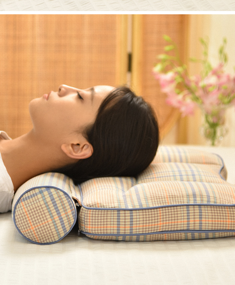 英伦格纹模块枕头分区护颈椎枕头纯全荞麦壳助睡眠