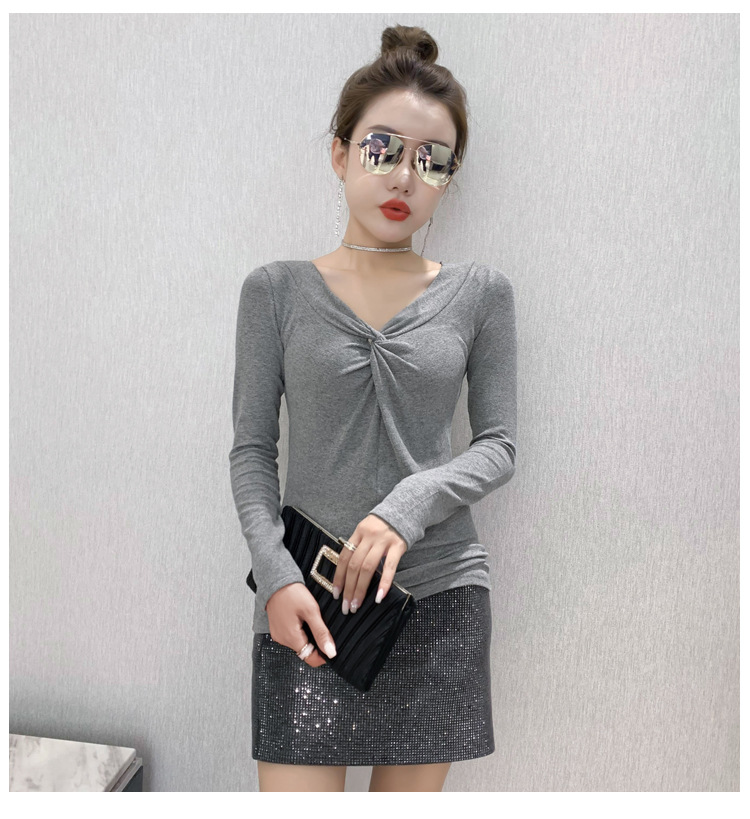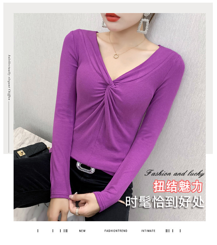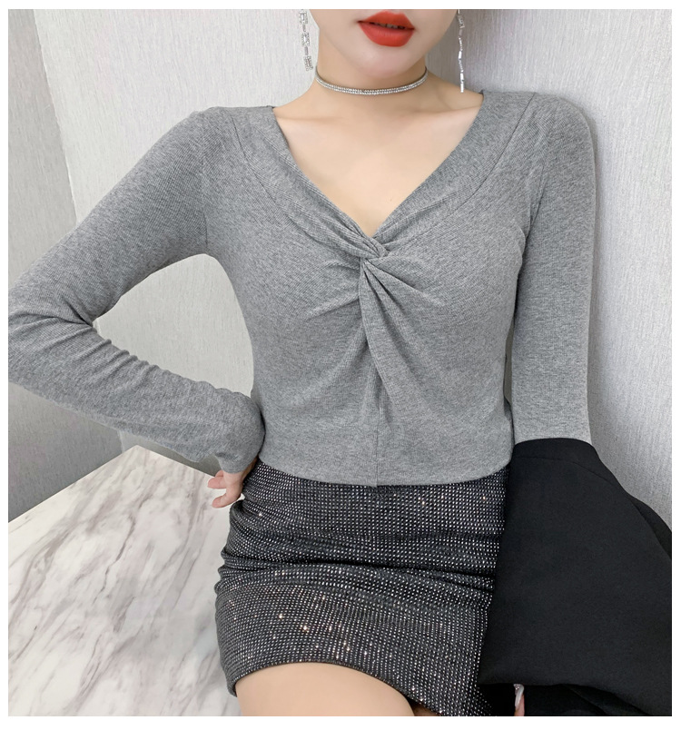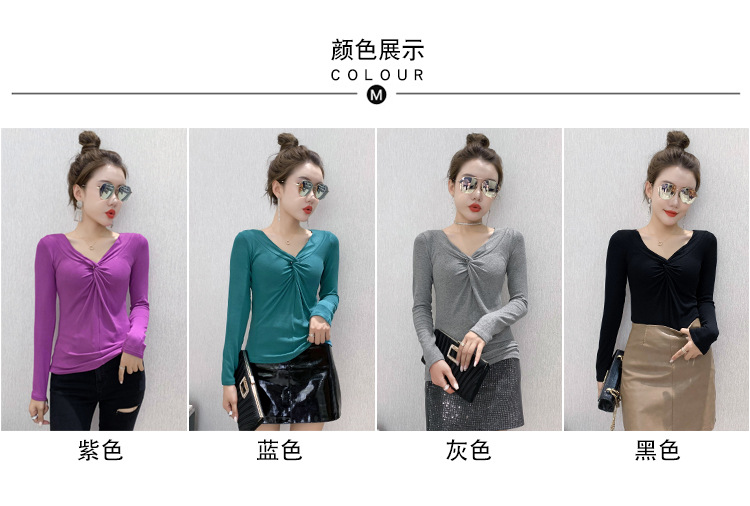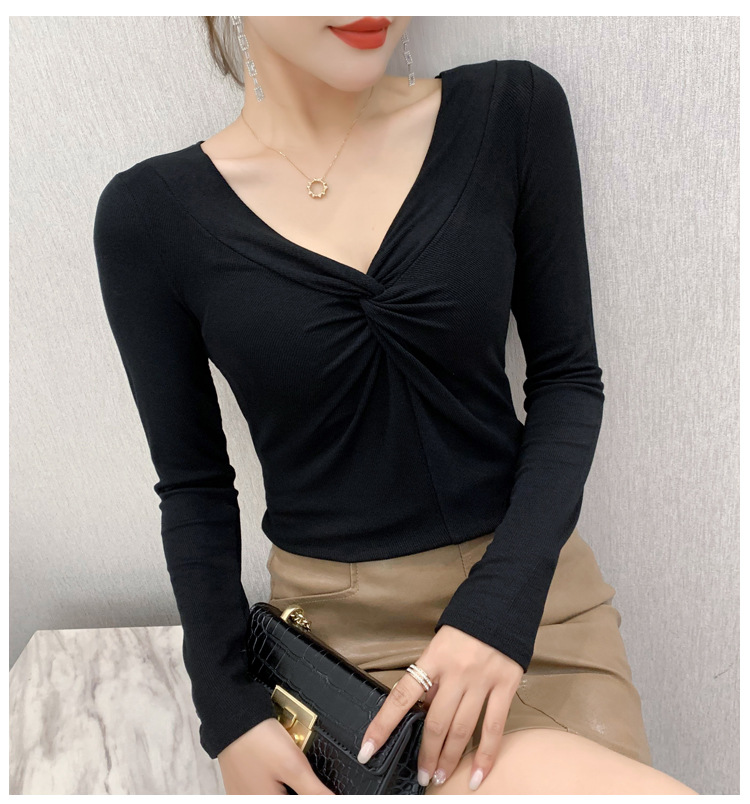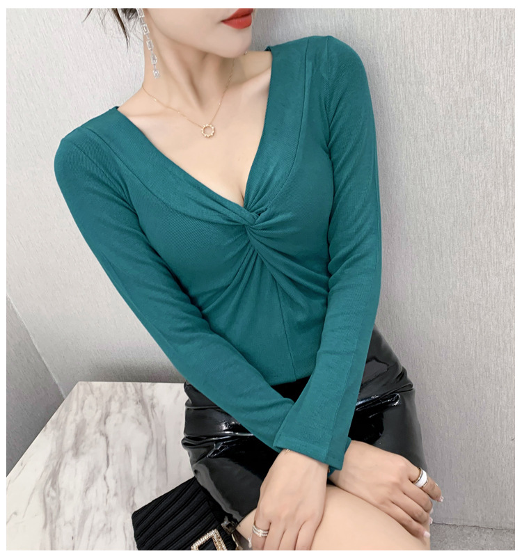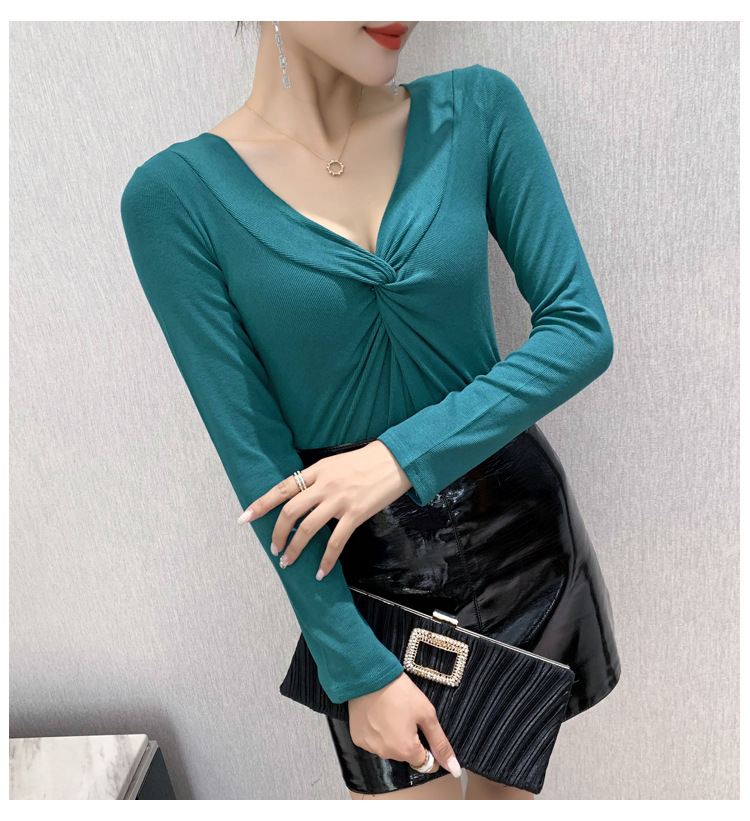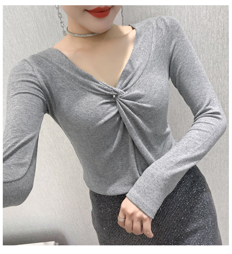 MZ-MZ5988薄款紧身针织春秋女性感交叉V领修身长袖打底衫ZXH
